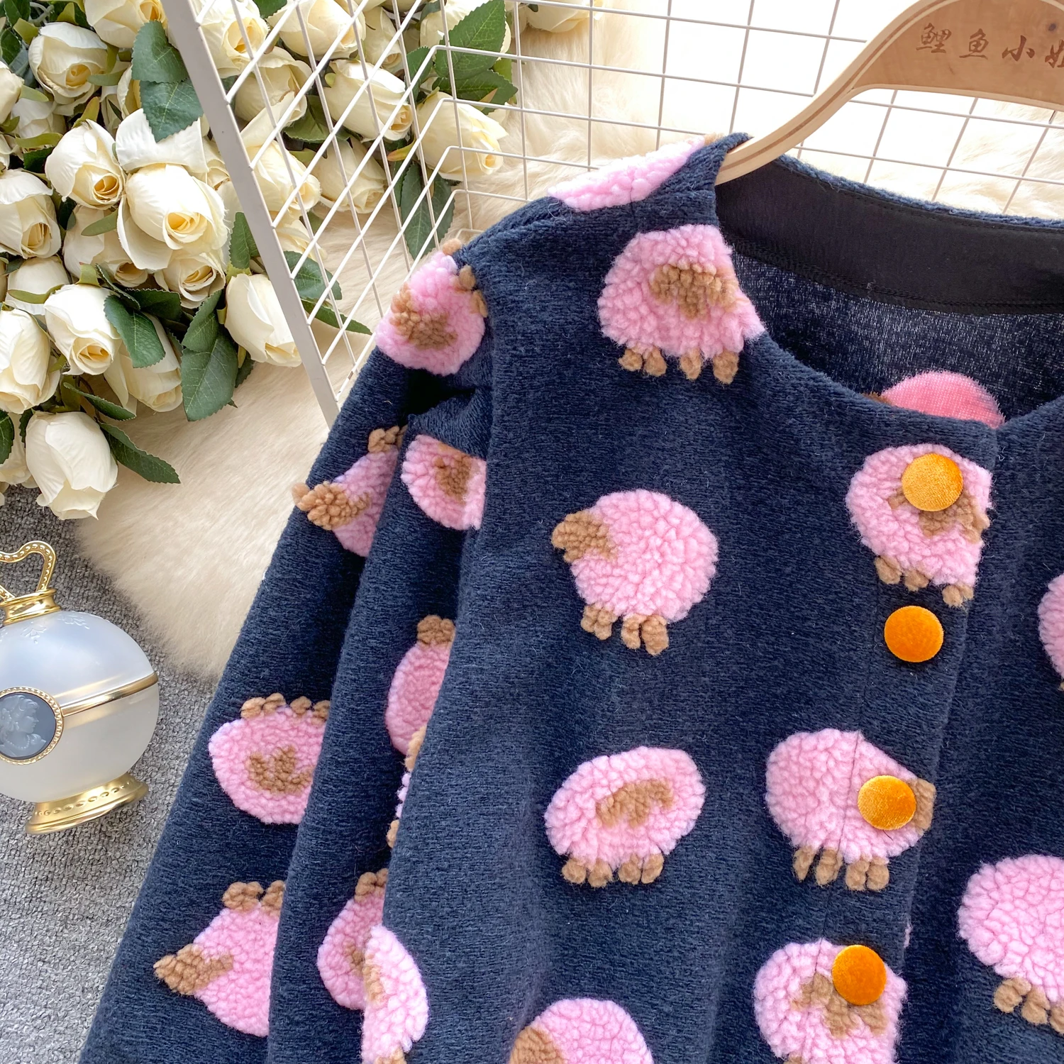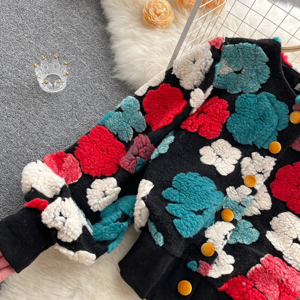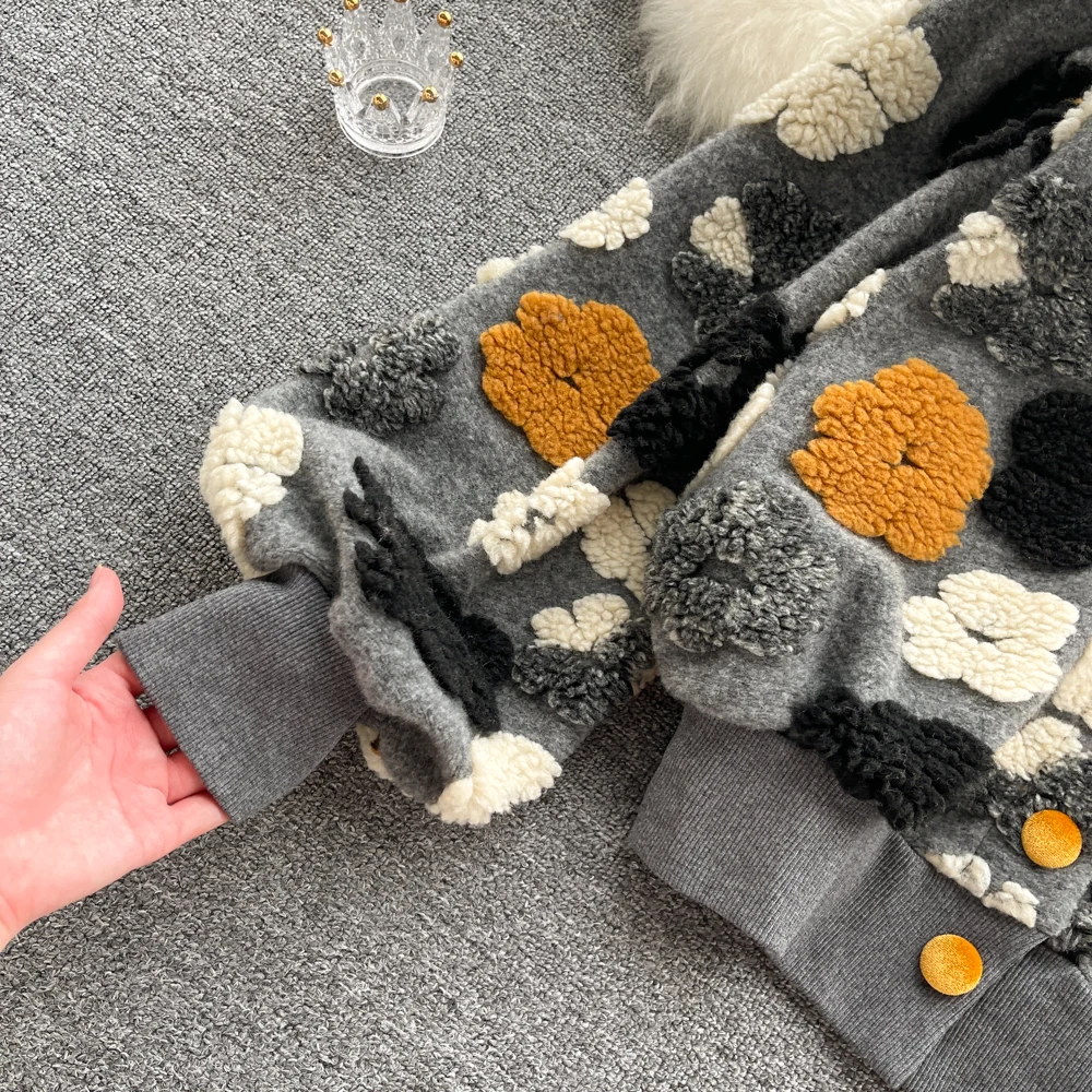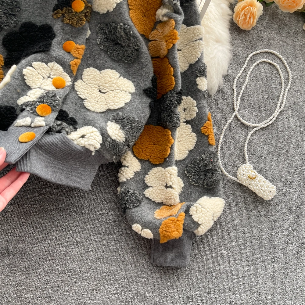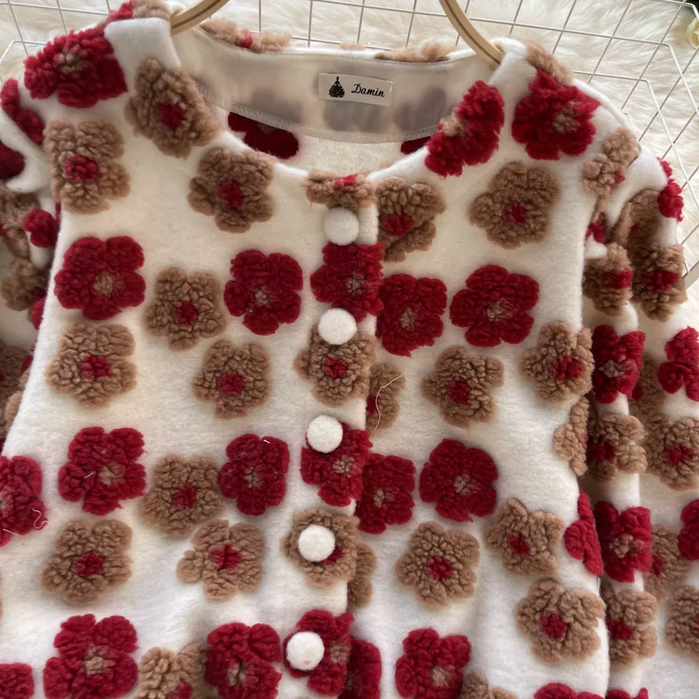 SINGREINY 3D Flower Vintage Cardigan Women Autumn Winter Single Breasted French Style Temperament Fashion Slim Chic Short Coat