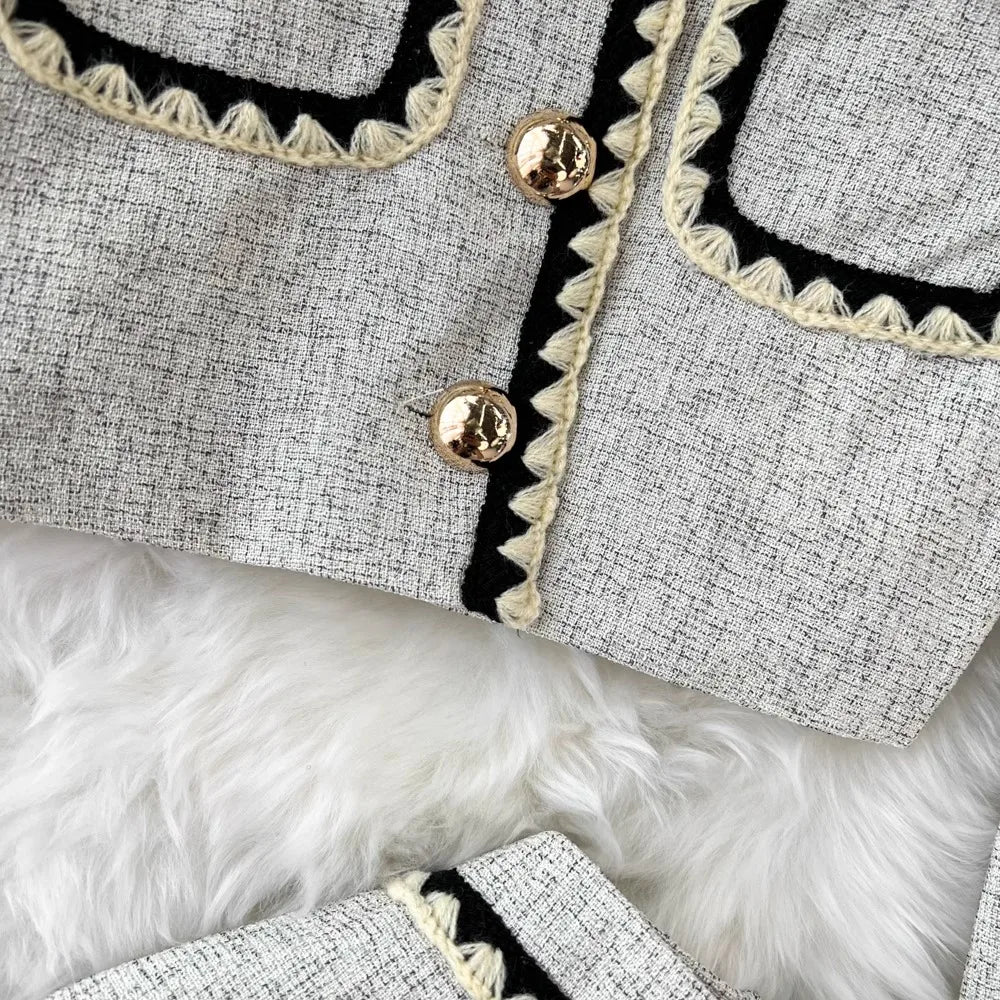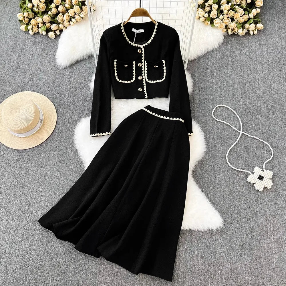 Small Fragrance Elegant 2-Piece Set Spring Autumn Trendy Women's Outfit O-Neck Short Coat+High Waist Midi A-line Skirt Suit