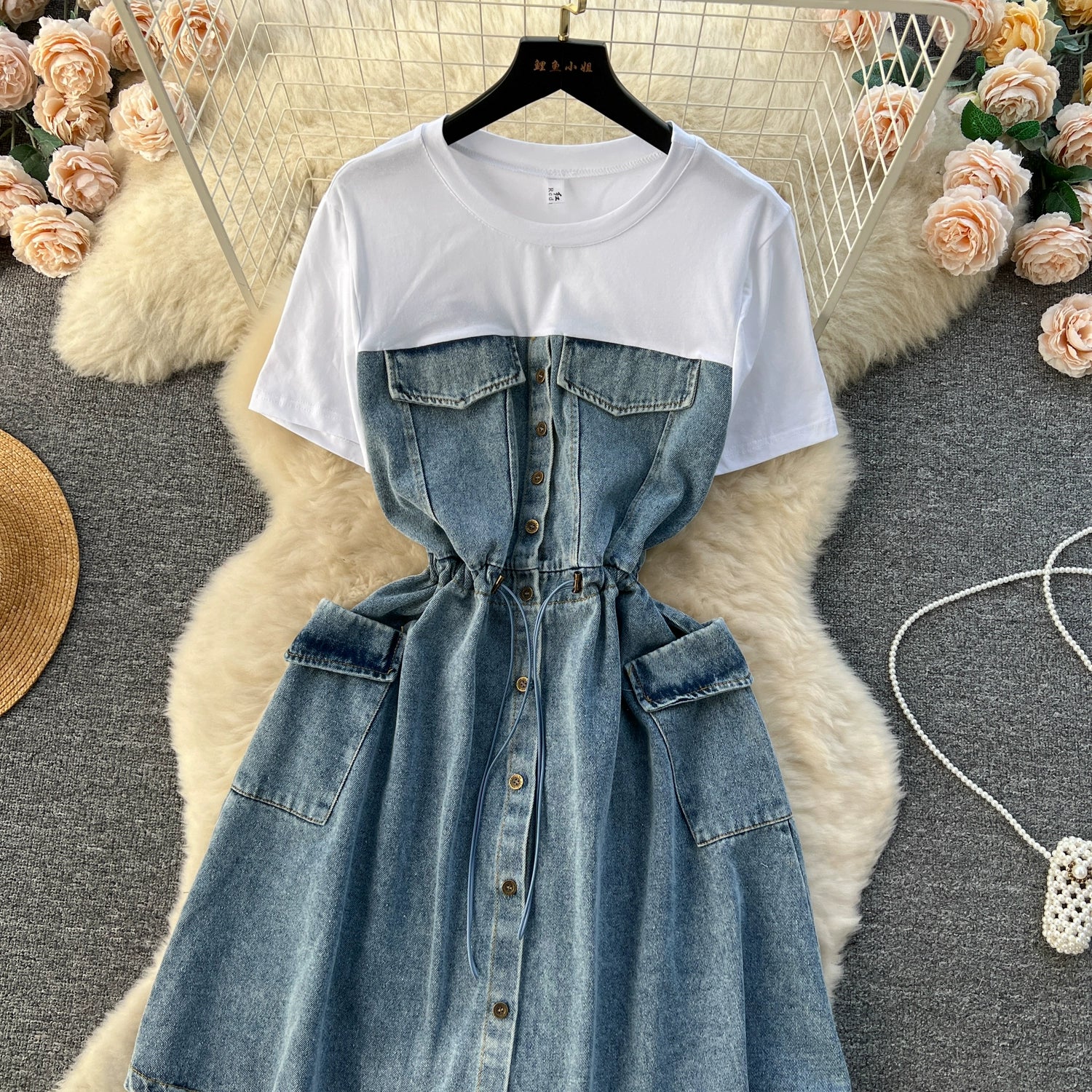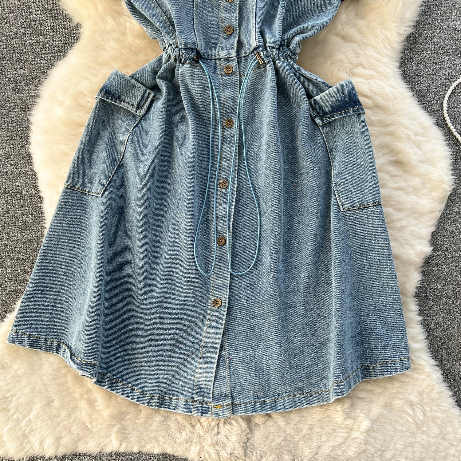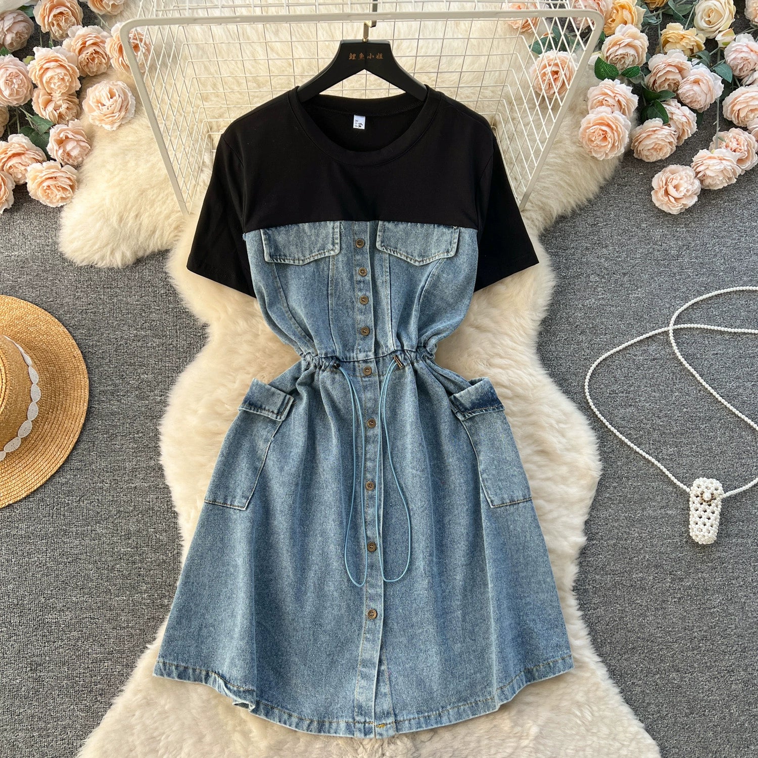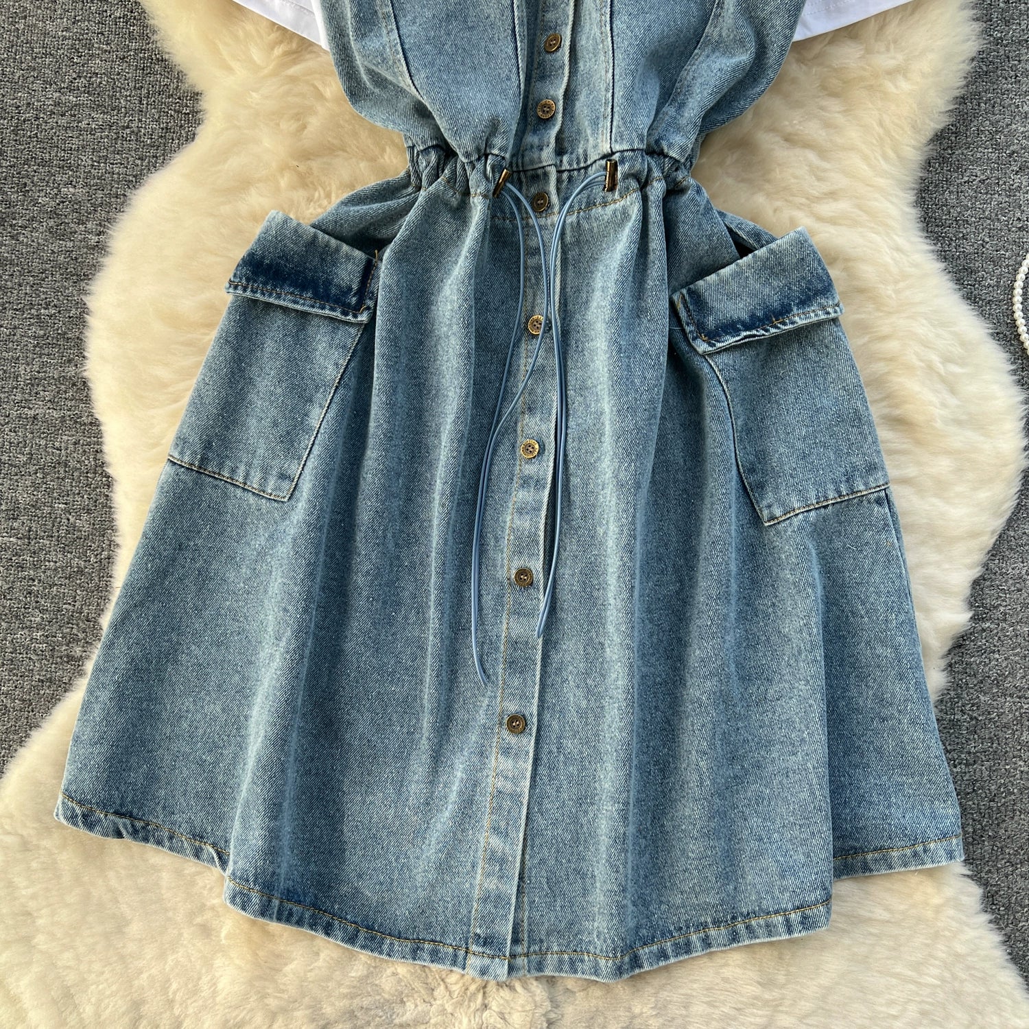 Spring Fashion Elegant Casual Women Patchwork Mini Denim Dress Vintage Slim Drawstring Dresses Female Party Clothes Robe New