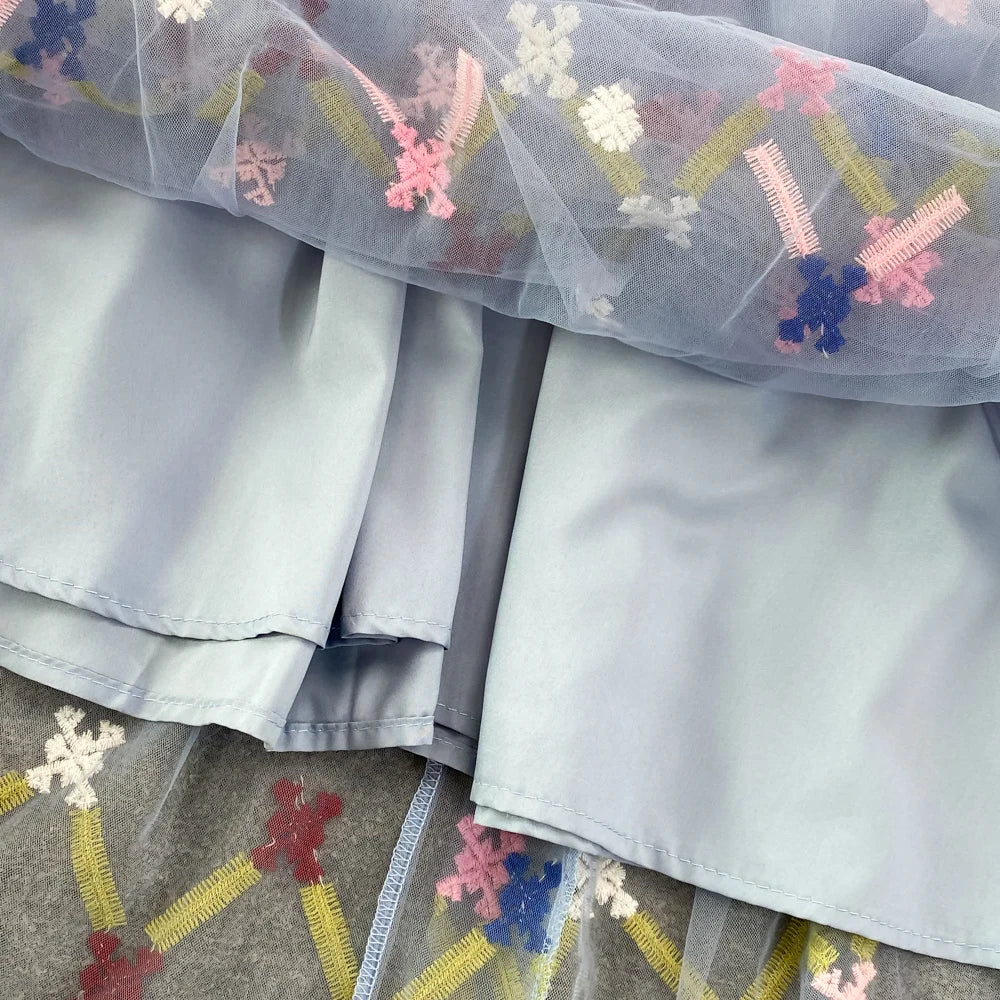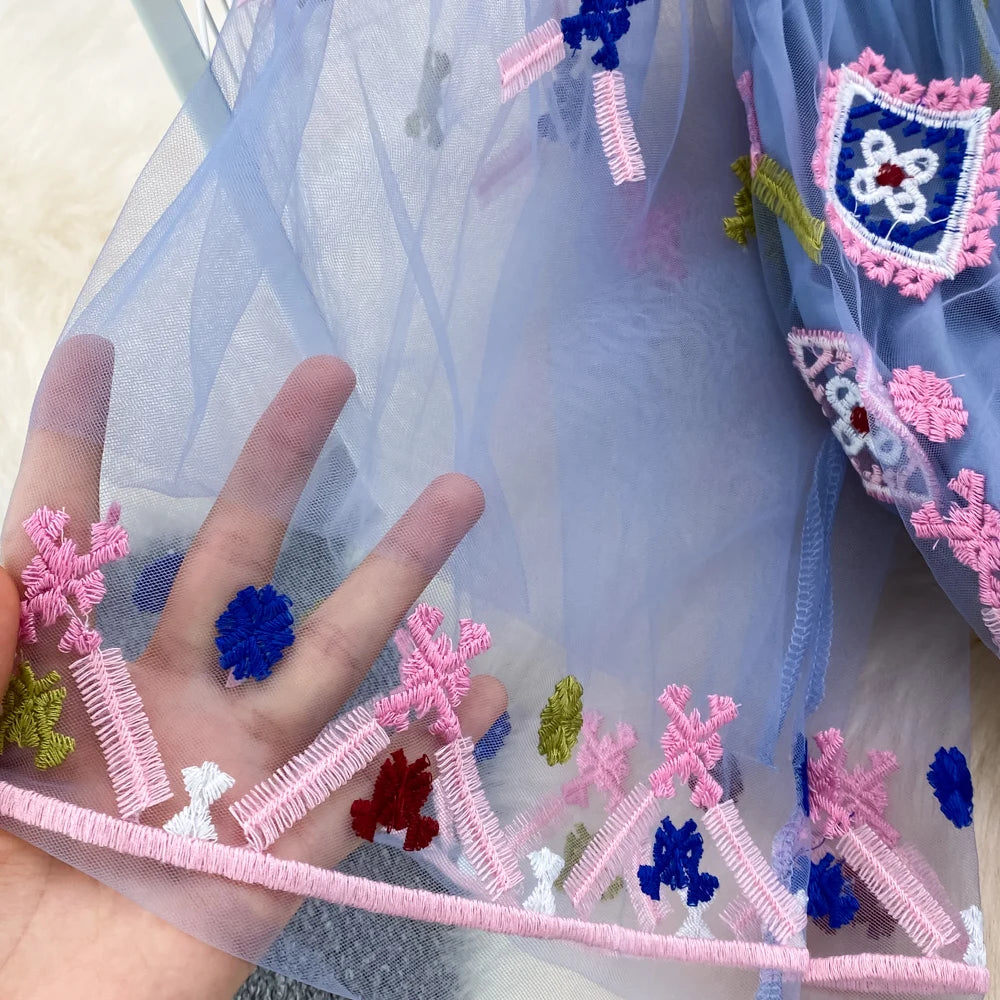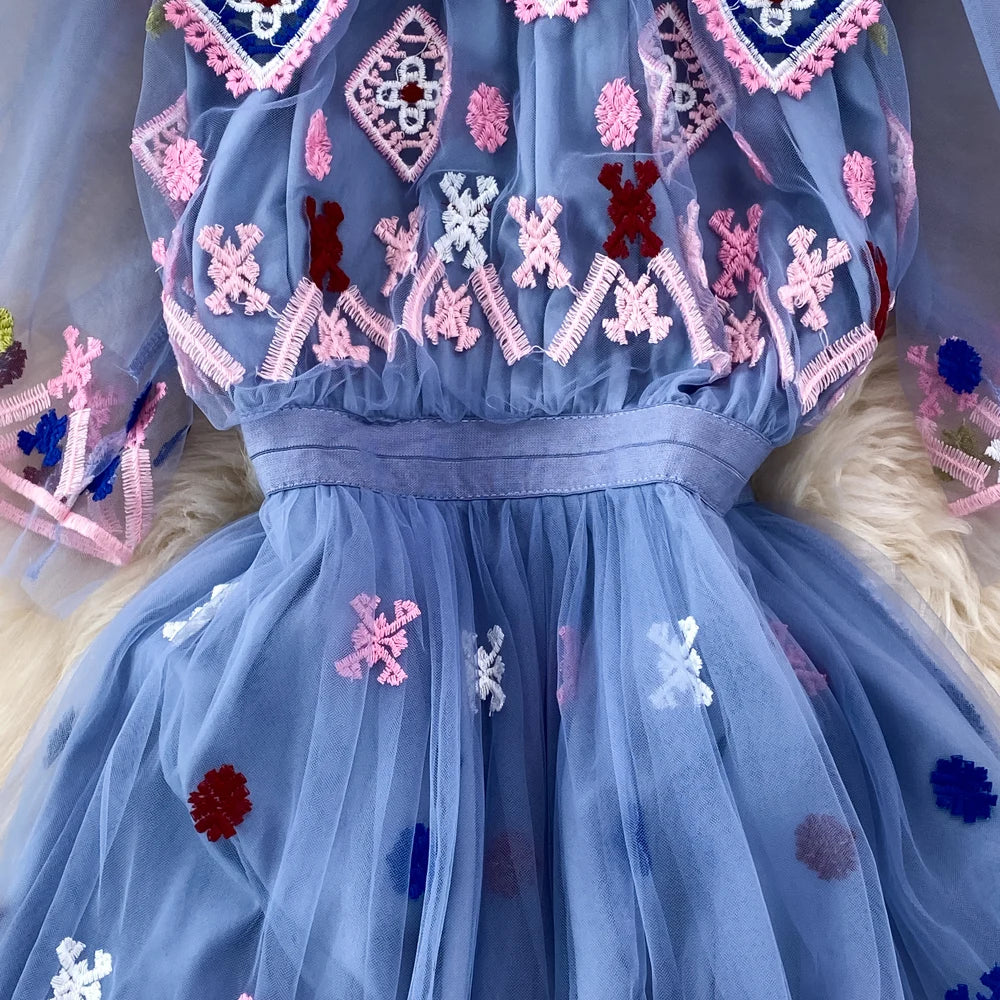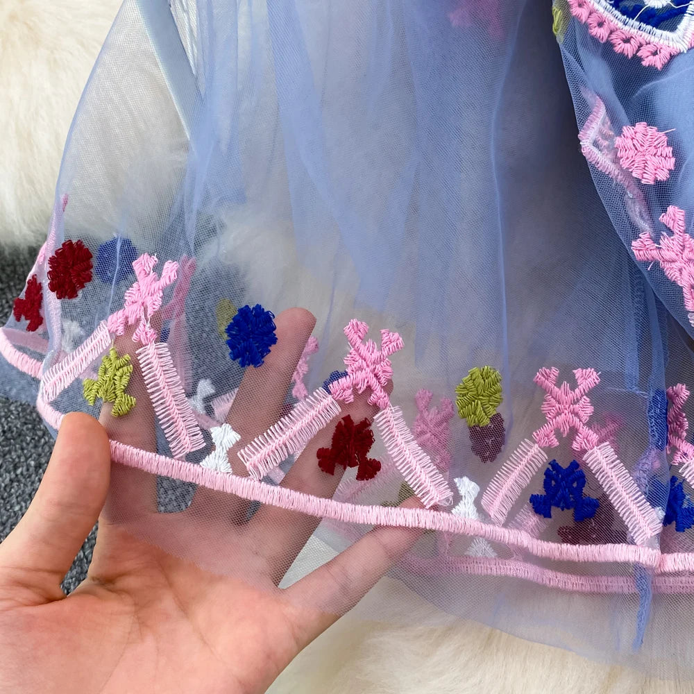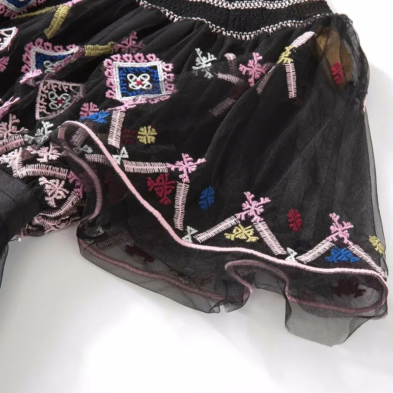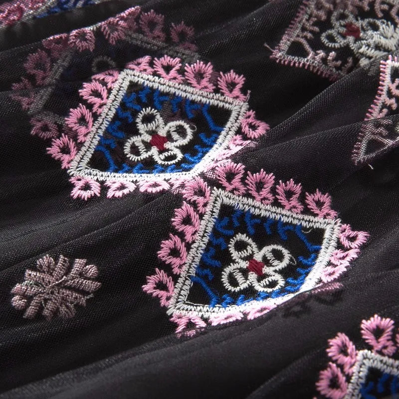 Summer Designer Fashion Runway Maxi Dress Women Short Sleeves Vintage High Quality Mesh Embroidery Long Party Dress