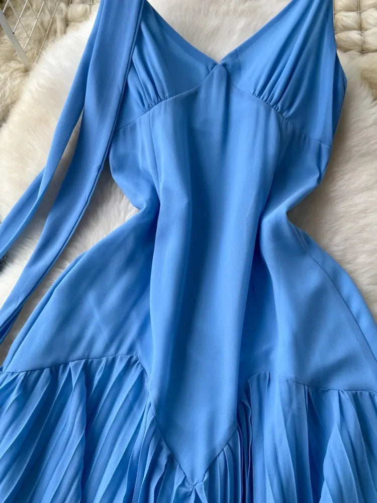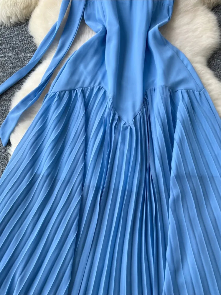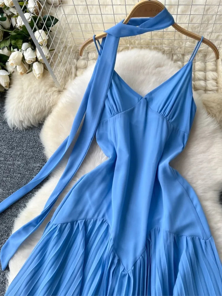 Summer Elegant Casual Women Solid Dress Halter A-Line Beach Holiday Party Long Robe Female Spaghetti Strap Boho Clothes Vestidos