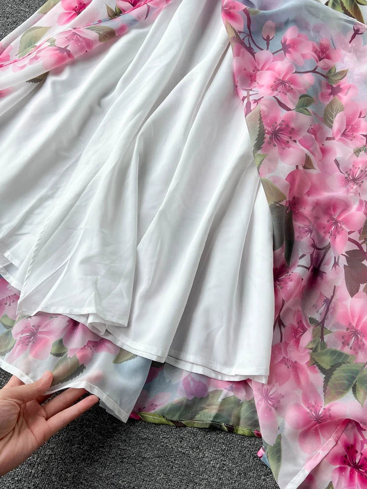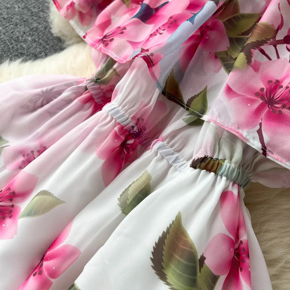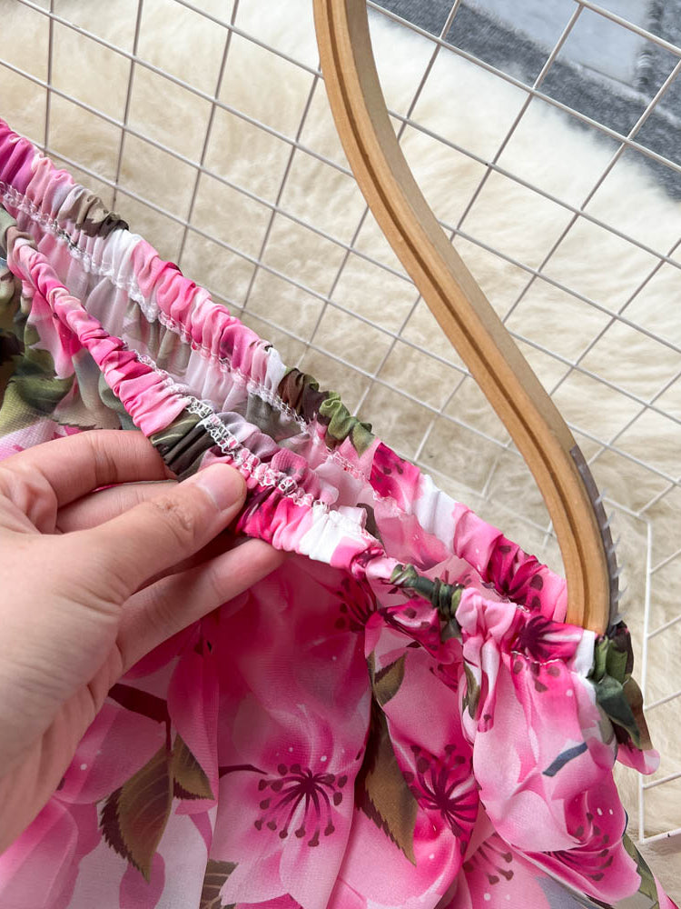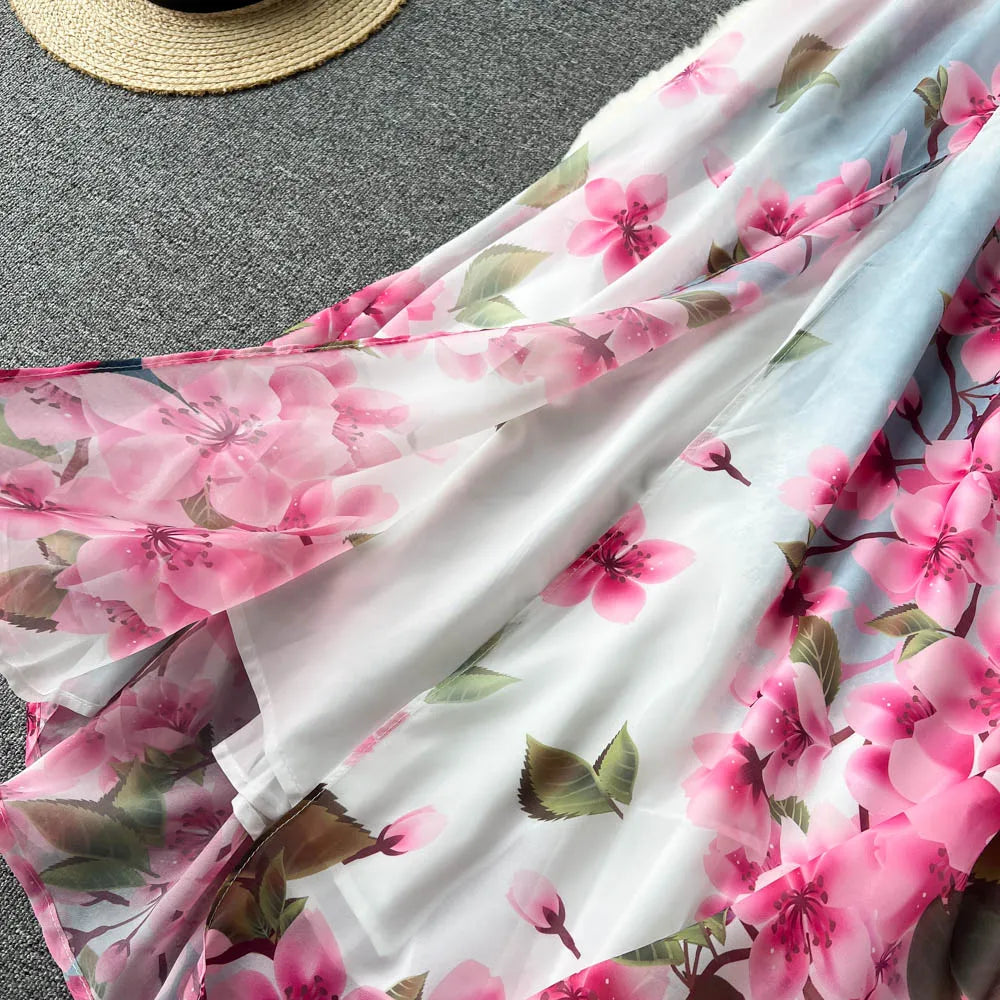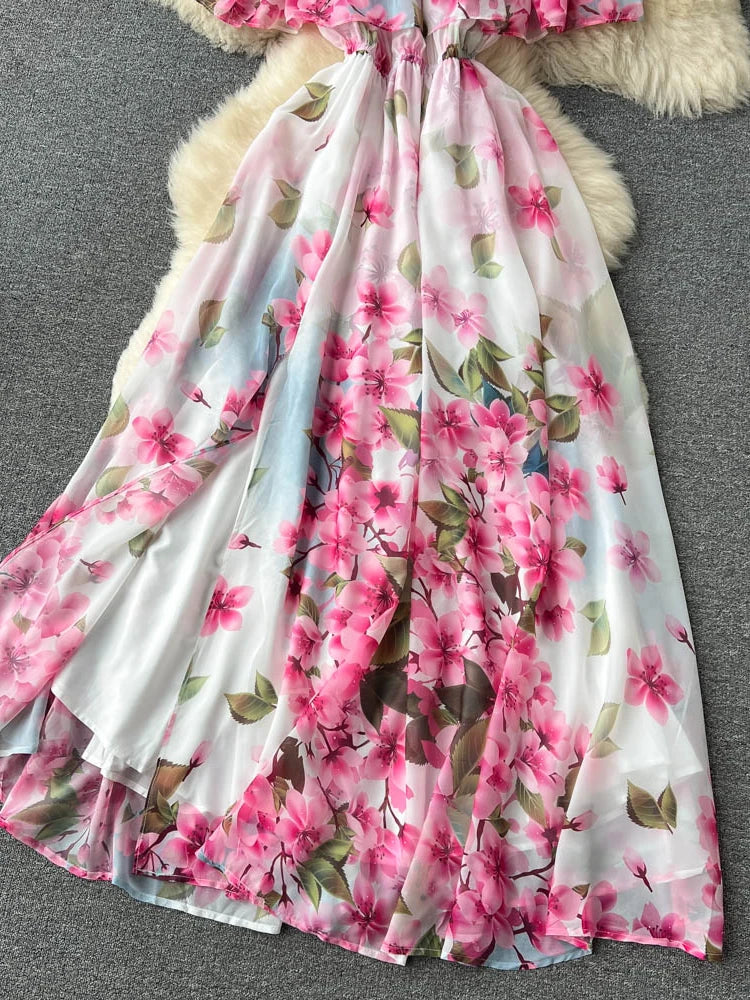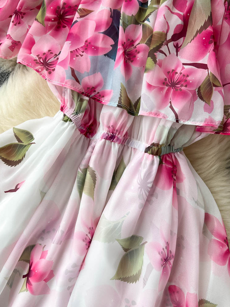 Summer Ruffle Off The Shoulder Chiffon Dress Women Sexy Slim A-line Printed Dresses Ladies Viantage Beach Split Maxi Dress