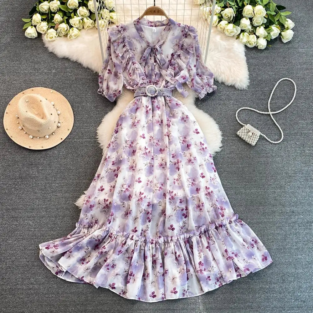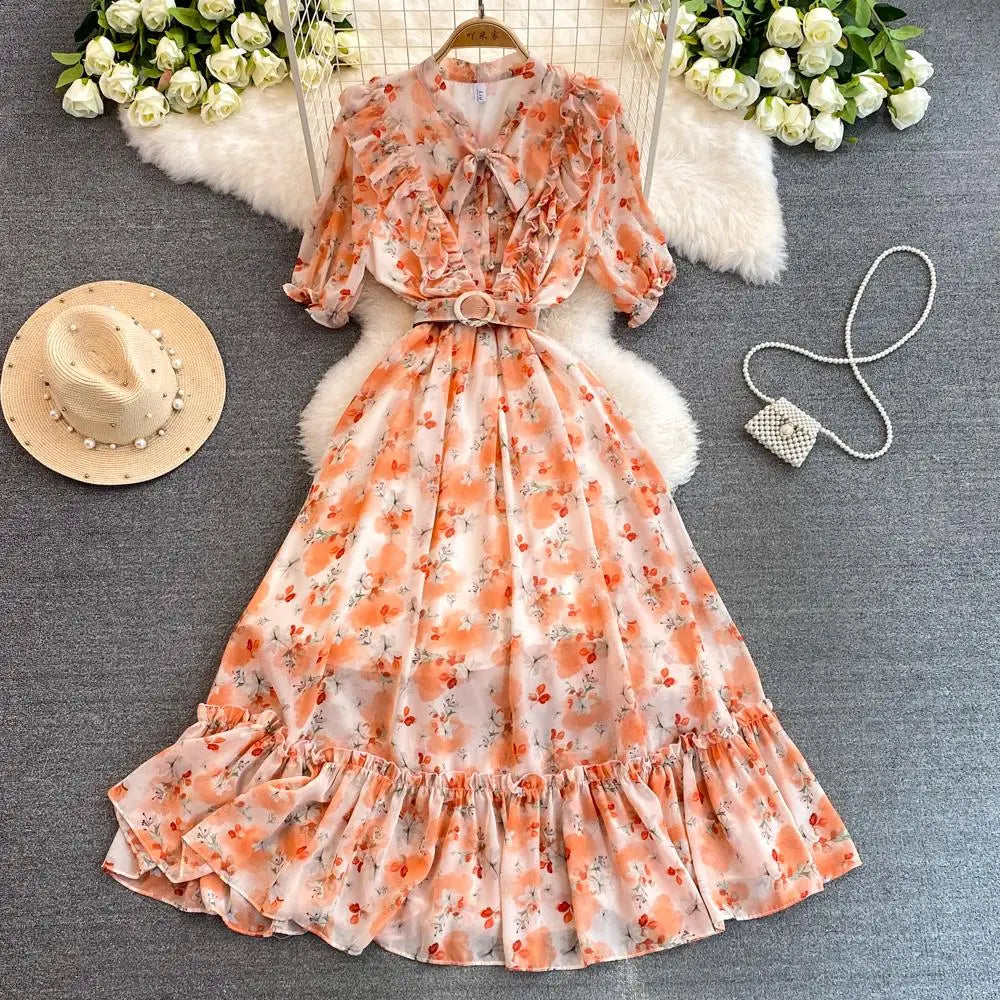 Summer Women Fashion Floral Print Casual Midi Dress Short Sleeve A-Line Maxi Boho Holiday Clothes Female Long Robe Mujers New
