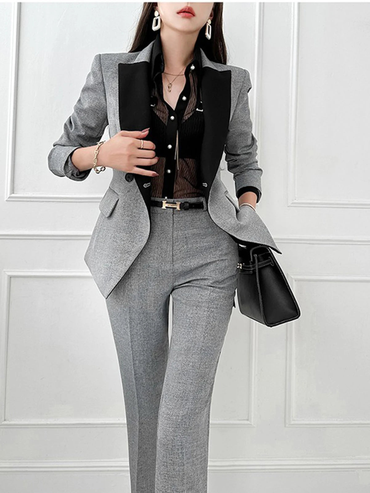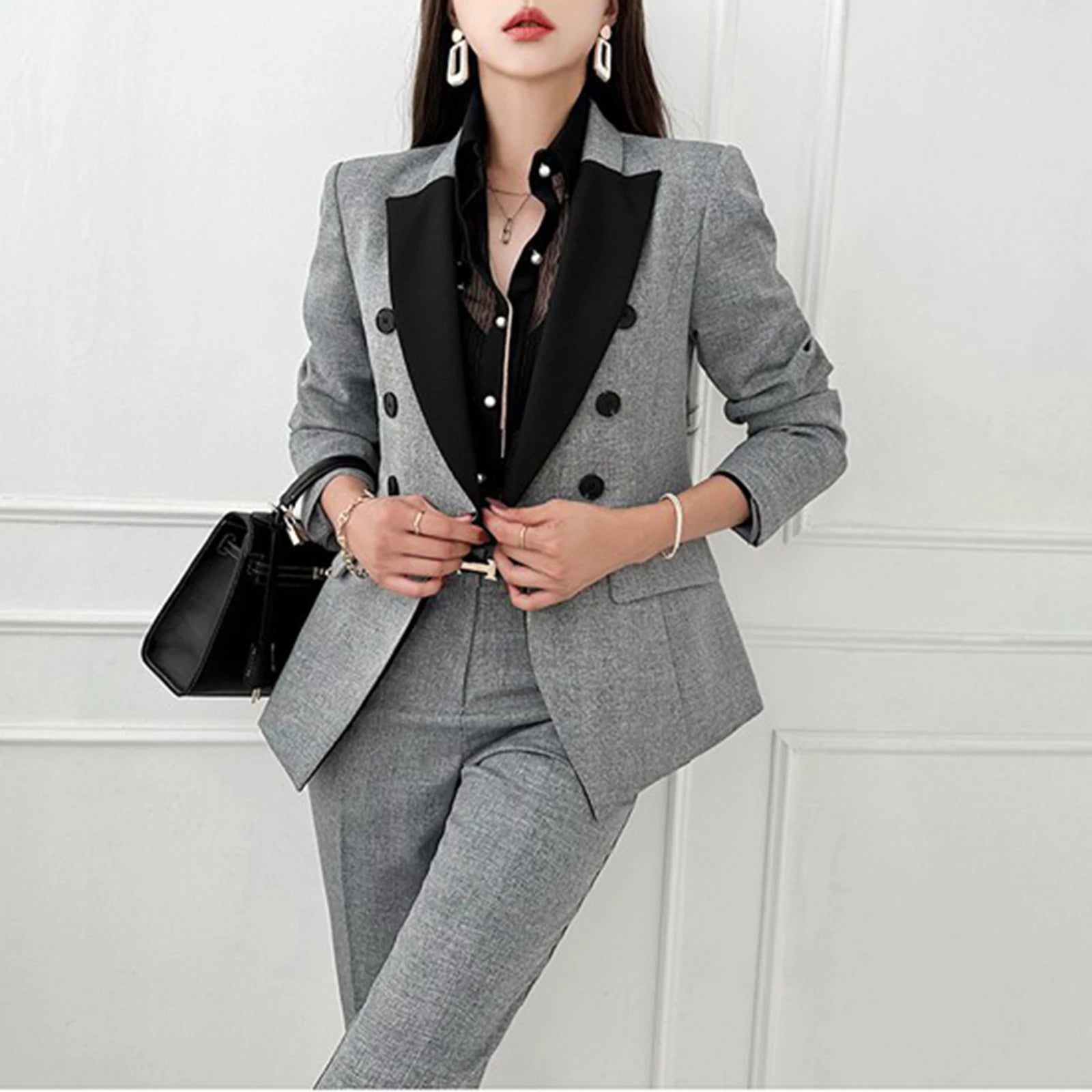 Trendy Slim Fit Commuting Two Pieces Set Office Women's Formal Outfit Double Breasted Work Blazer+Suit Pants Spring Autumn New