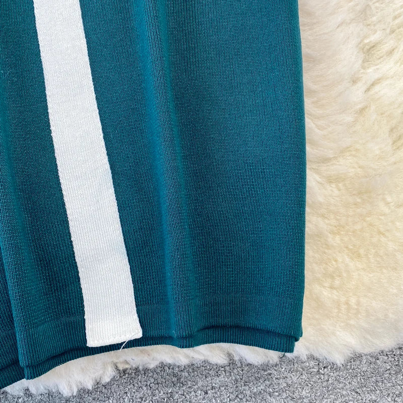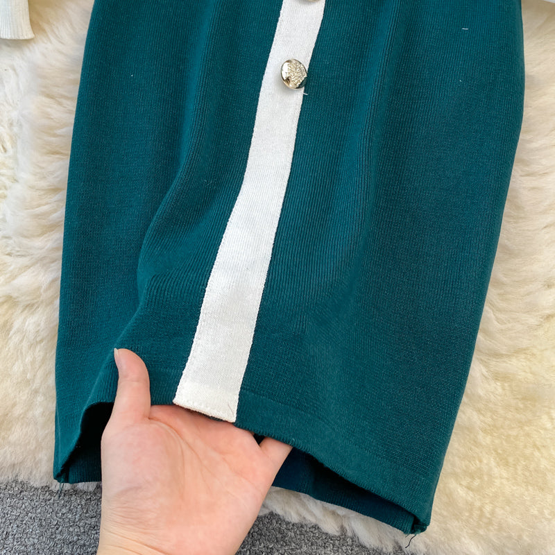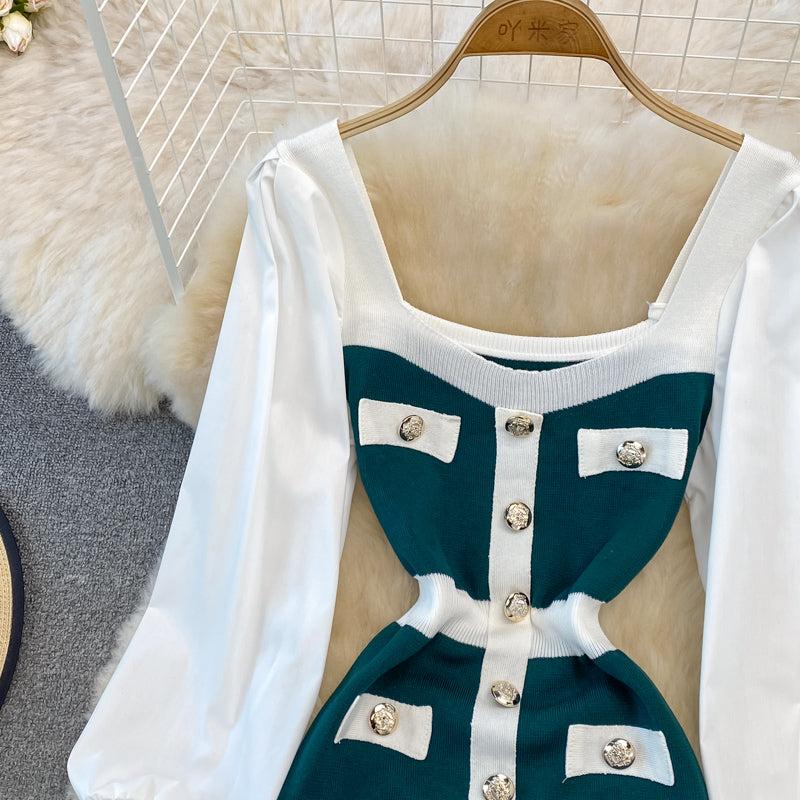 Vintage Elegant Patchwork Square Neck Long Sleeve Knit Dress Casual Women Fashion High Waist Summer Spring Hip Wrap Dress