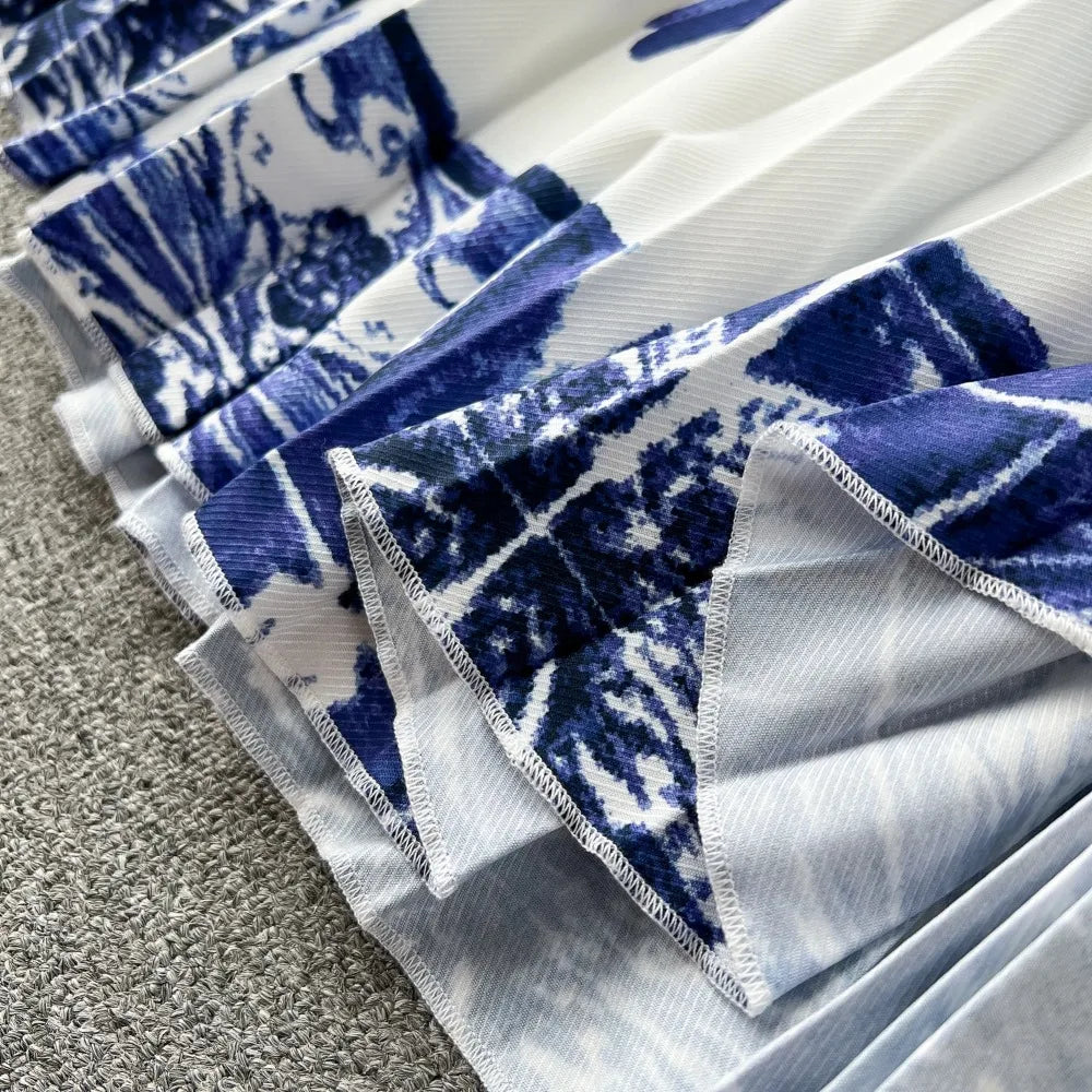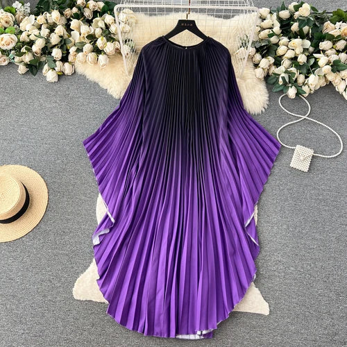 Vintage Print Elegant O-neck Batwing Sleeve Dress A-line Casual Belt Fashion Dress Women Fashion Summer Spring Vestidos