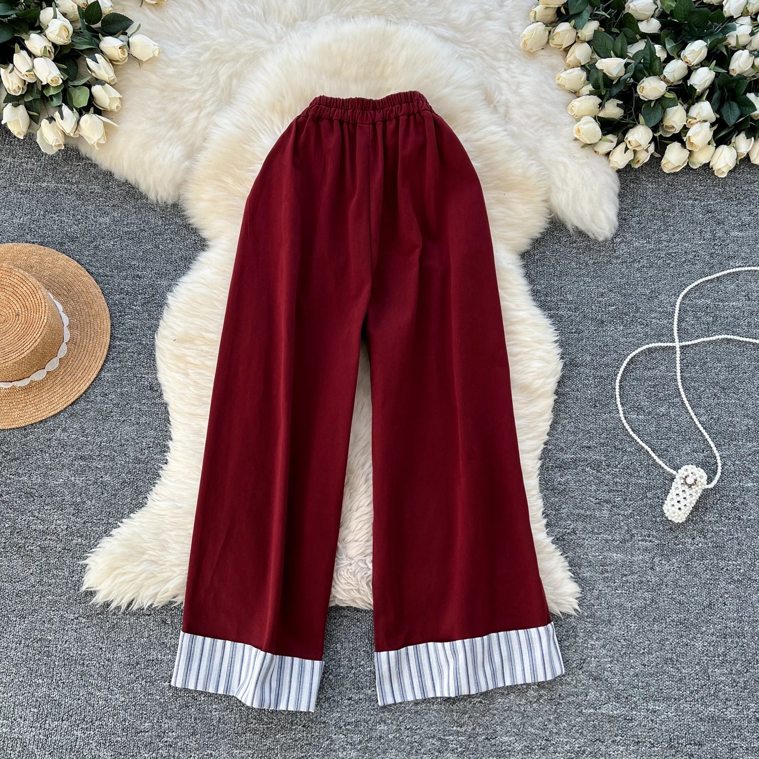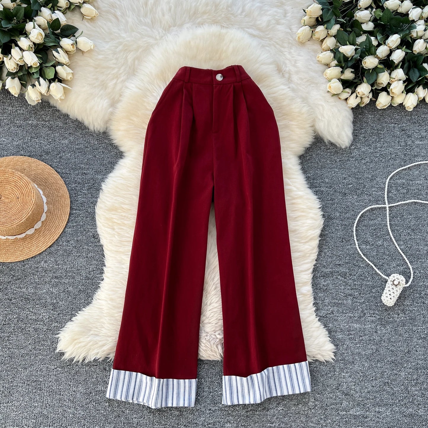 Vintage Striped High Waist Women Elegant Button Long Wide Leg Pants French High Street Streetwear Autumn Winter Basics Clothing
