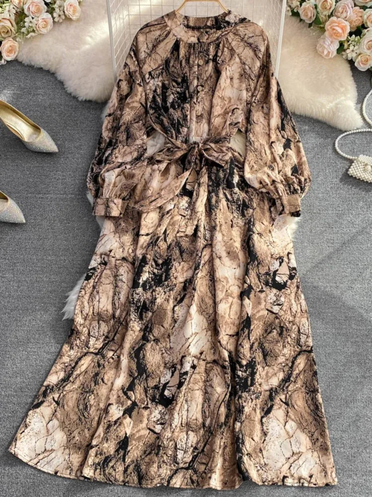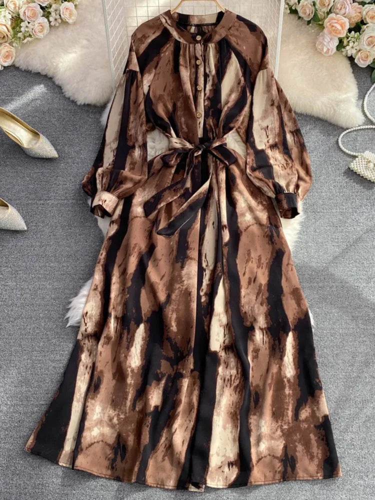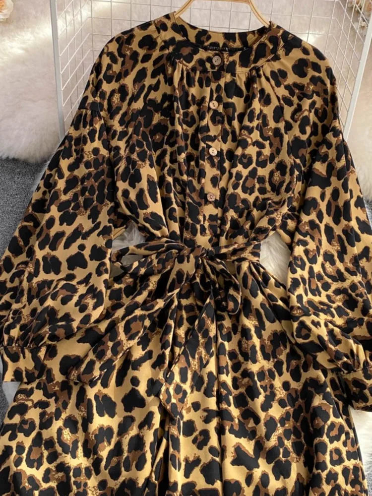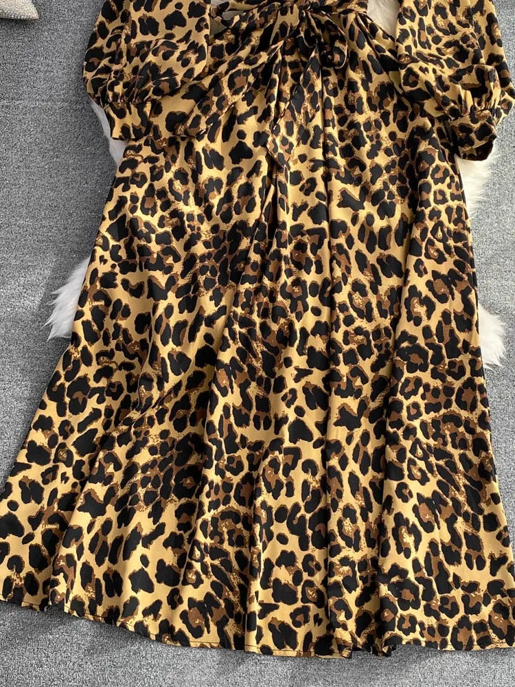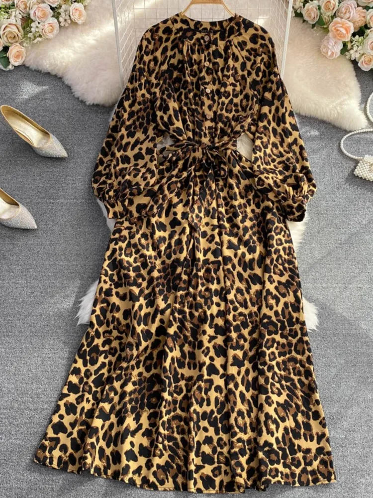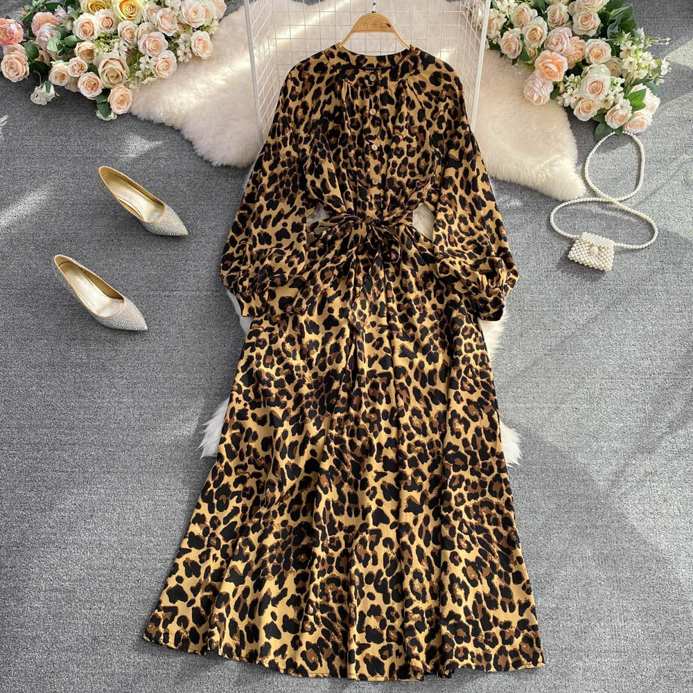 Vintage Women Casual Print Long Party Dress Elegant and Chic A-Line Leopard Prom Birthday Clothes Female Fashion Robe Autumn New