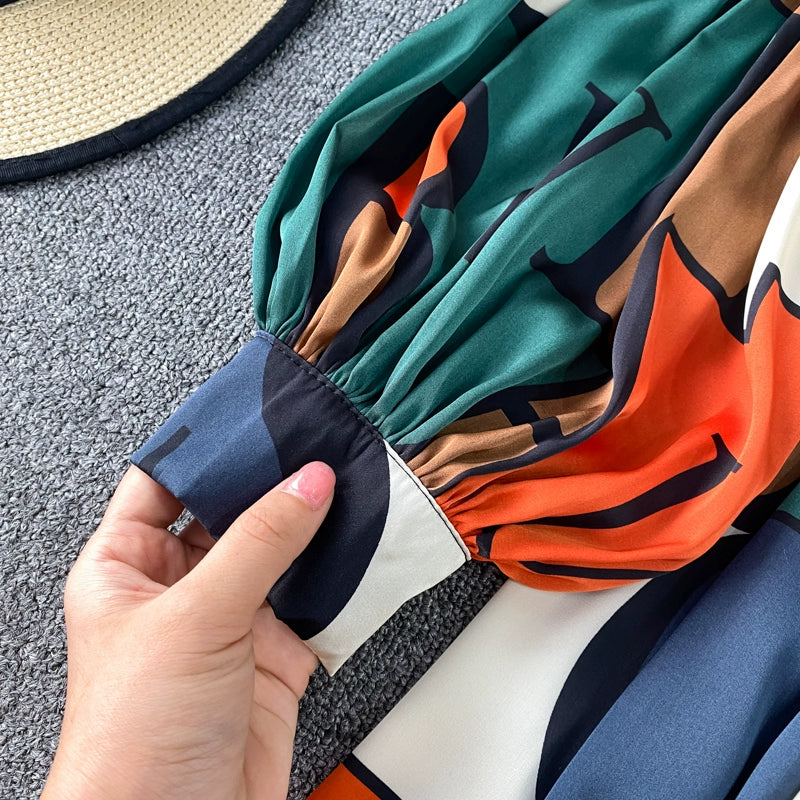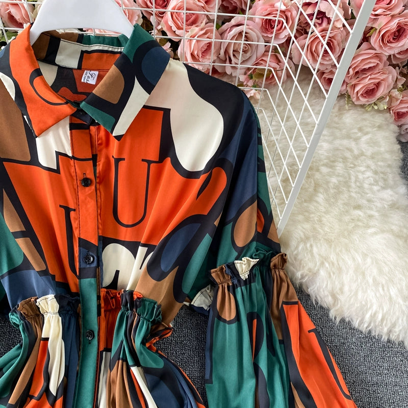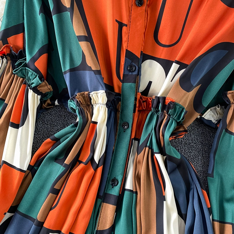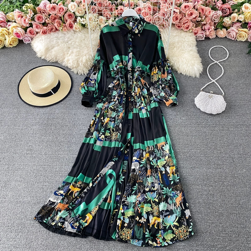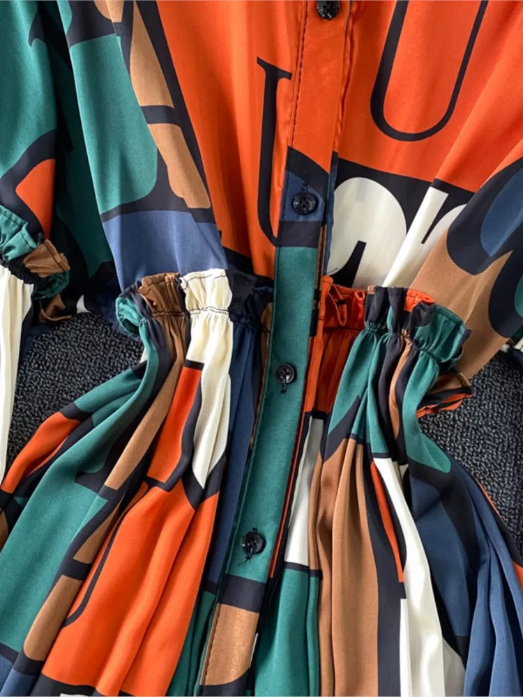 Vintage Women Casual Print Long Party Shirts Dress Elegant Single Breasted A-Line Prom Birthday Clothes Female Fashion Robe New