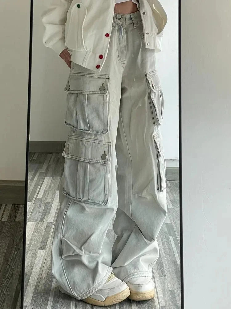 Wide Leg Cargo Pants for Women High Waist Denim Pants with Pockets Baggy Trendy Causal Hip-Hop Y2K Streetwear Spring
