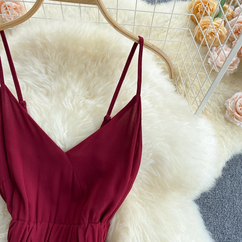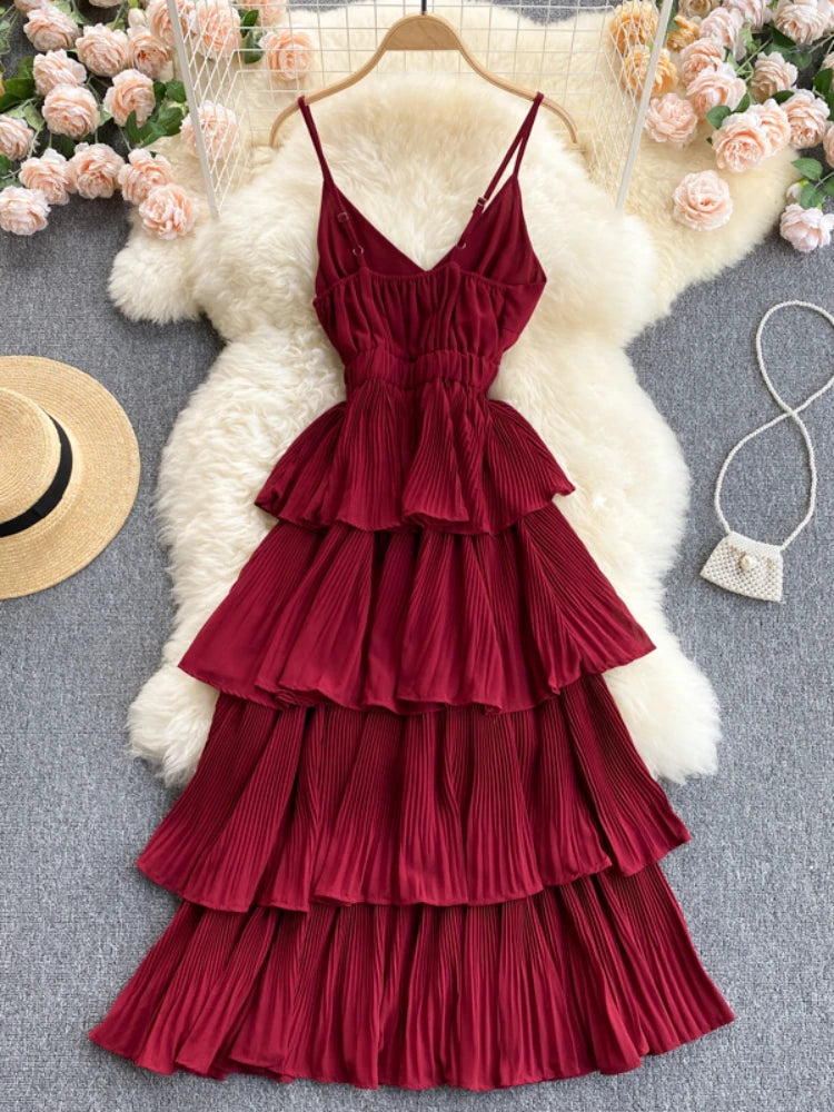 Women Beach Midi Dress 2021 New Summer Sexy V-neck Pleat Layer Ruffled Beach Dresses Ladies Elegant A Line Long Robe Vestido