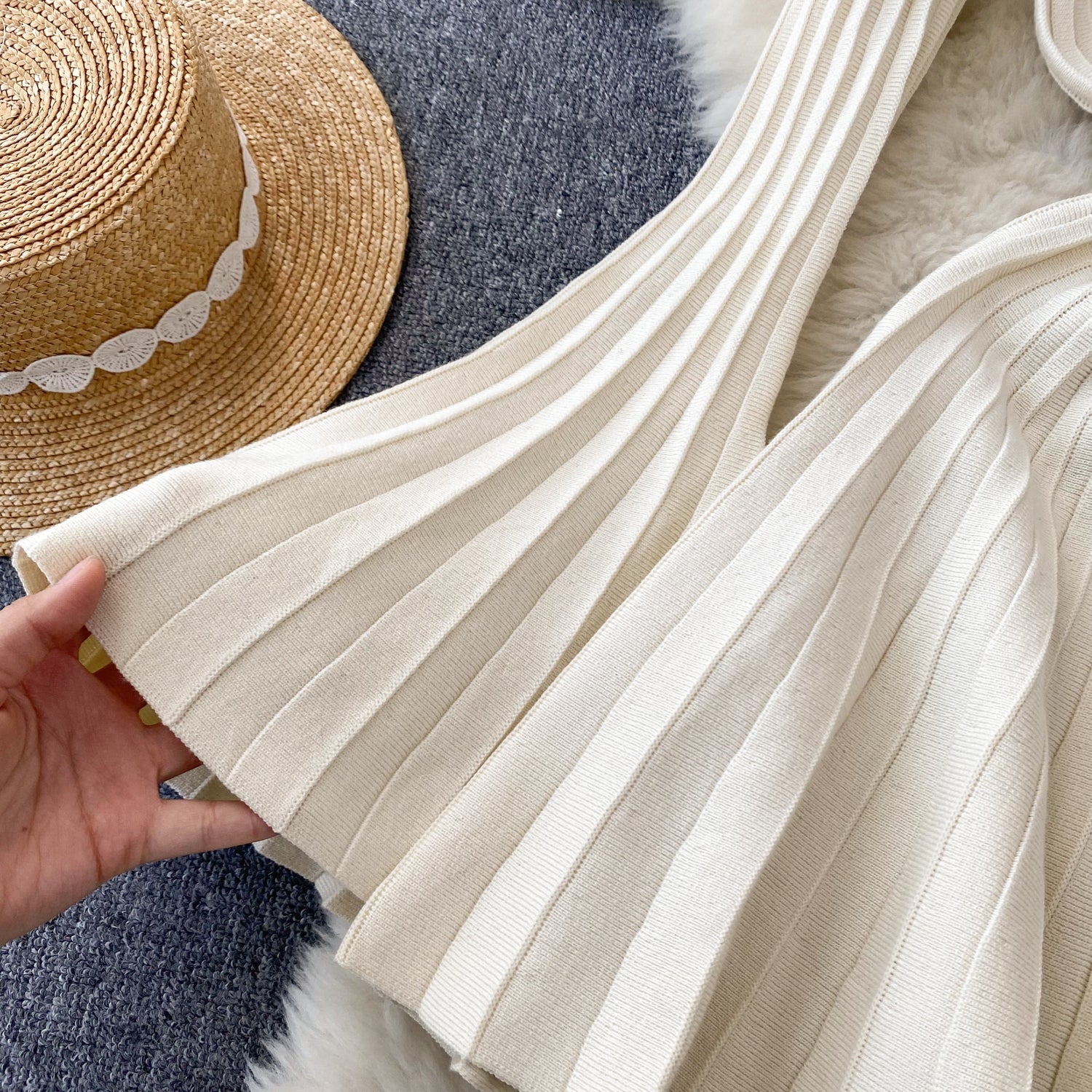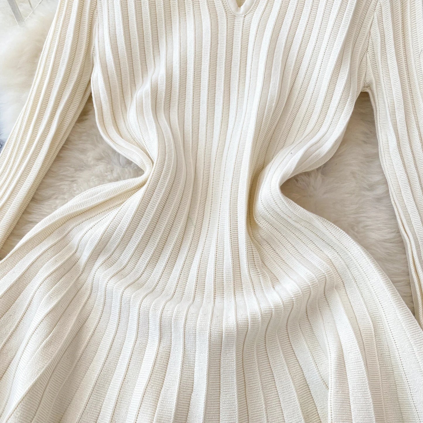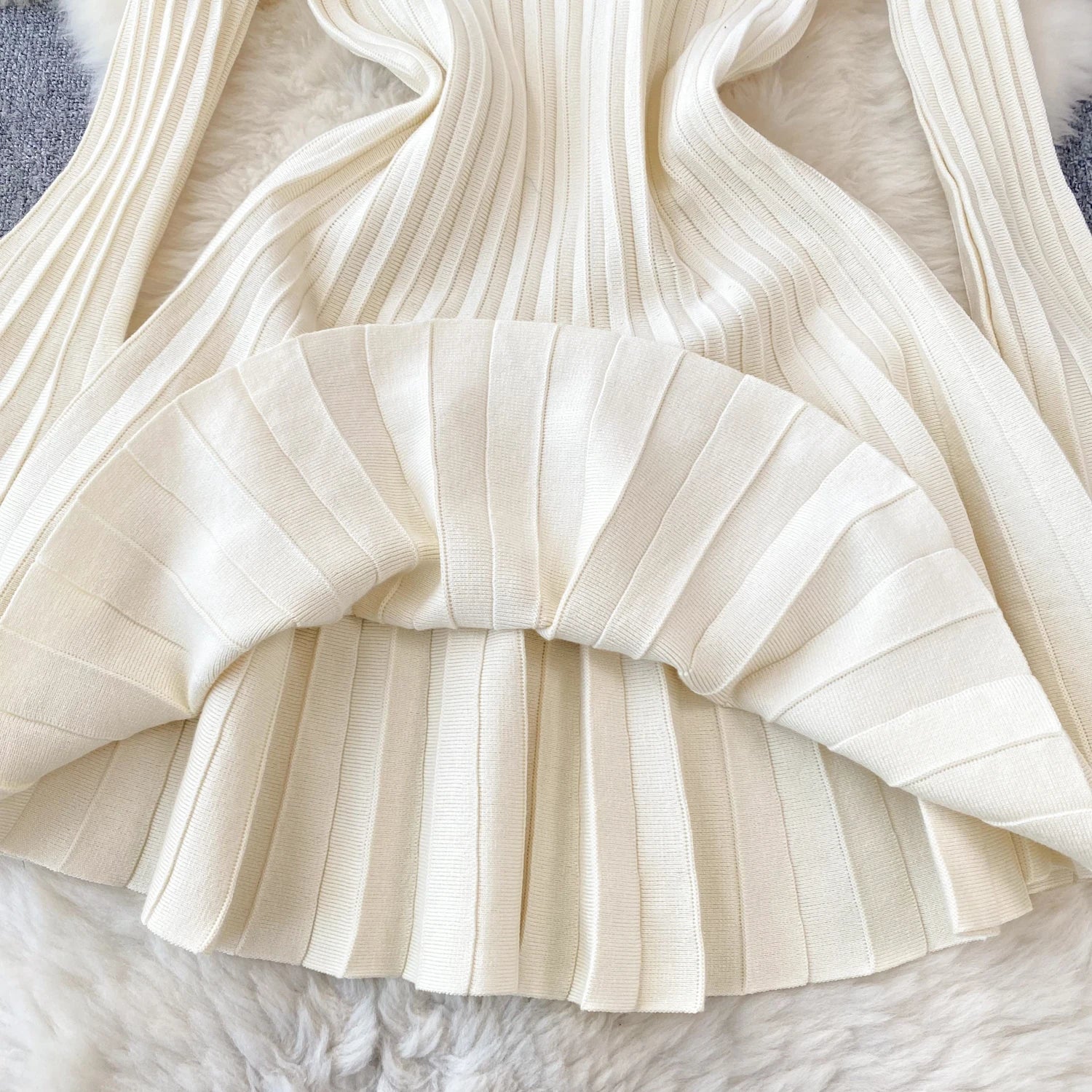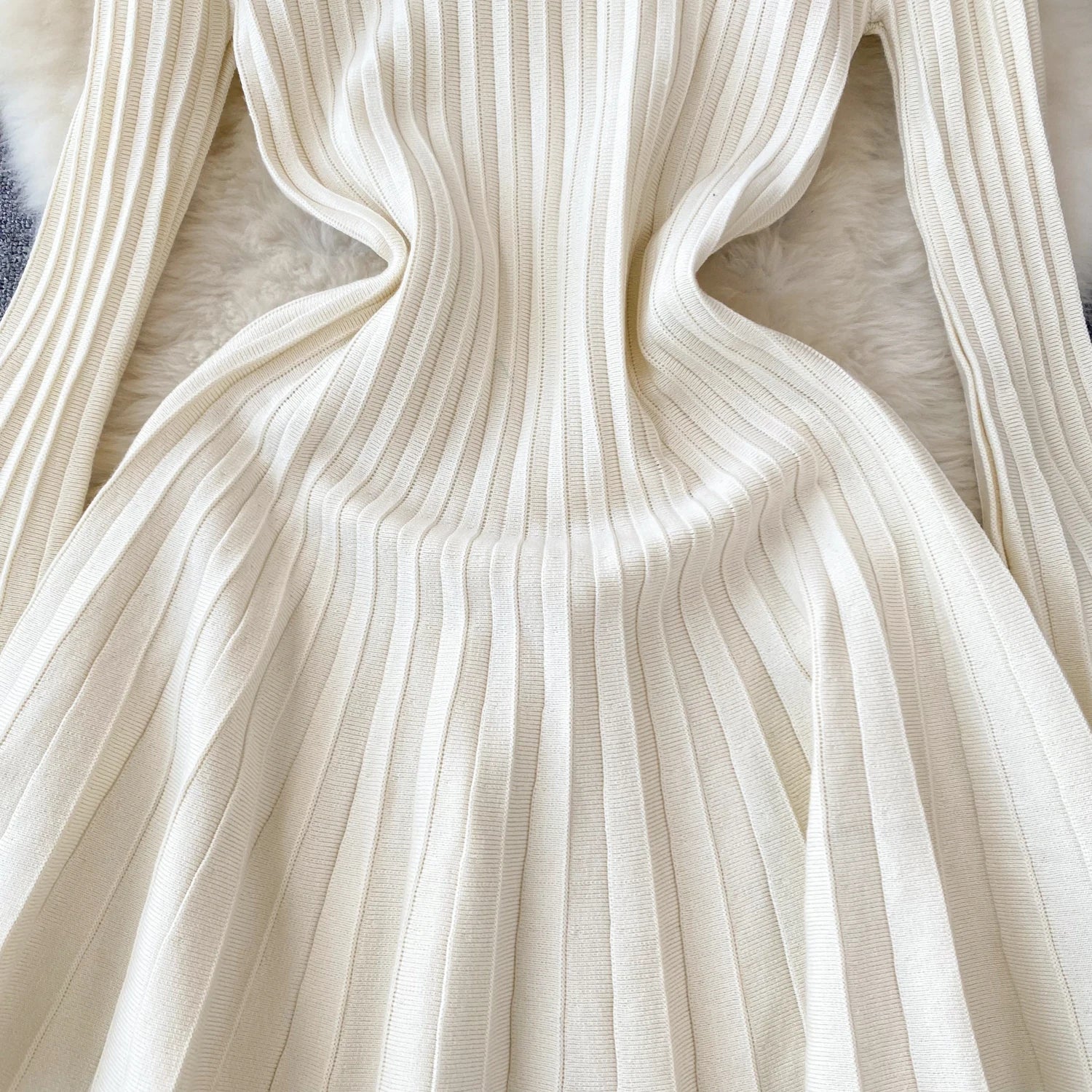 Women Chic Elegant O Neck Long Sleeve Dress French Sexy Fashion Knit Elastic Slim A-line Mini Dress