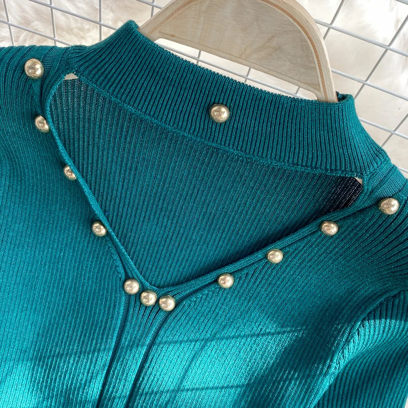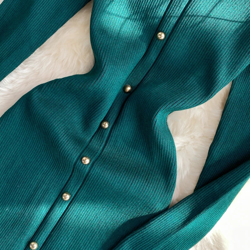 Women Chic Hollow Elegant Long Sleeve Bodycon Dress Sexy Party French Fashion Knit Wrap Vestidos Tight Slim Pencil Dress