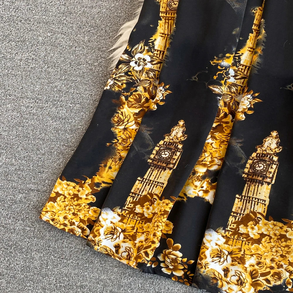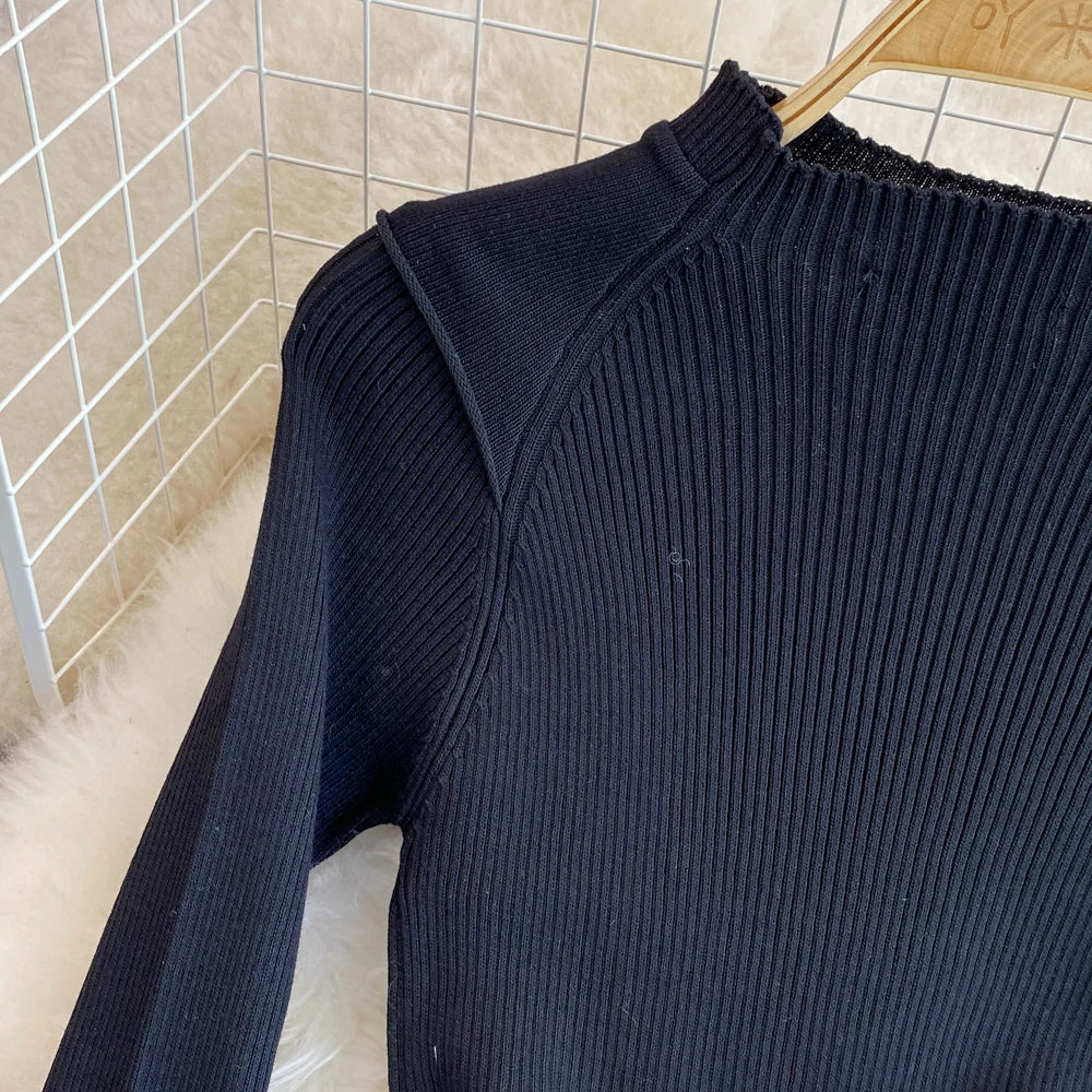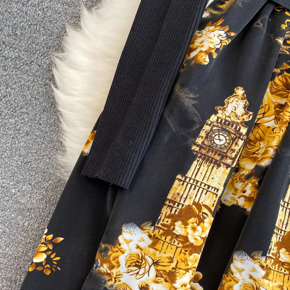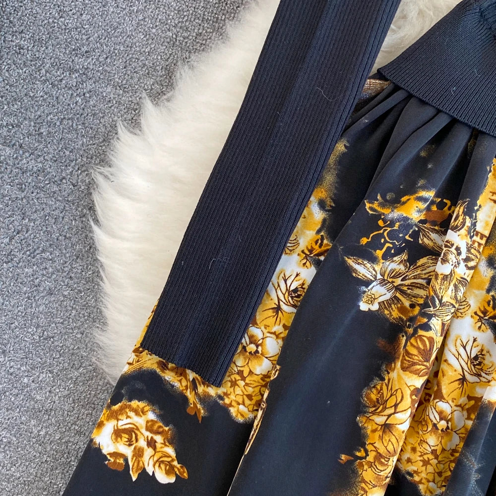 Women Chic Long Sleeve Stand Collar Patchwork A-line Dress Vintage Korean Fashion Knit Vestido Elegant Autumn Winter Knitwear