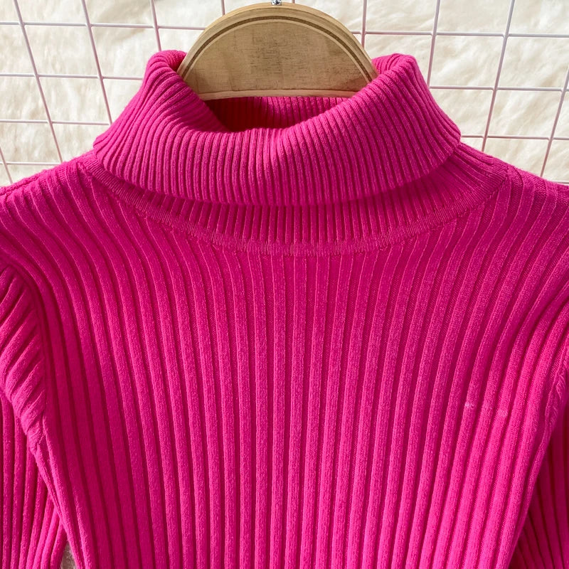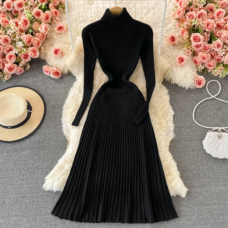 Women Chic Turtleneck Long Sleeve Sexy A-line Sweater Dress Vintage Korean Fashion Knit Vestido Elegant Autumn Winter Knitwear