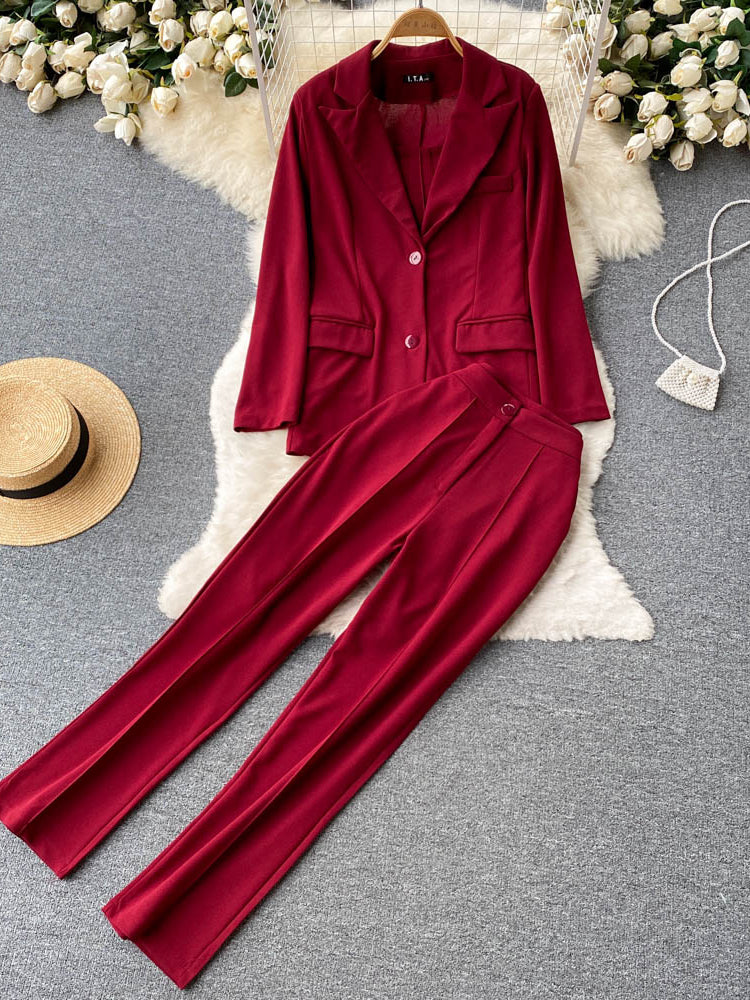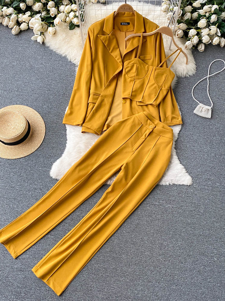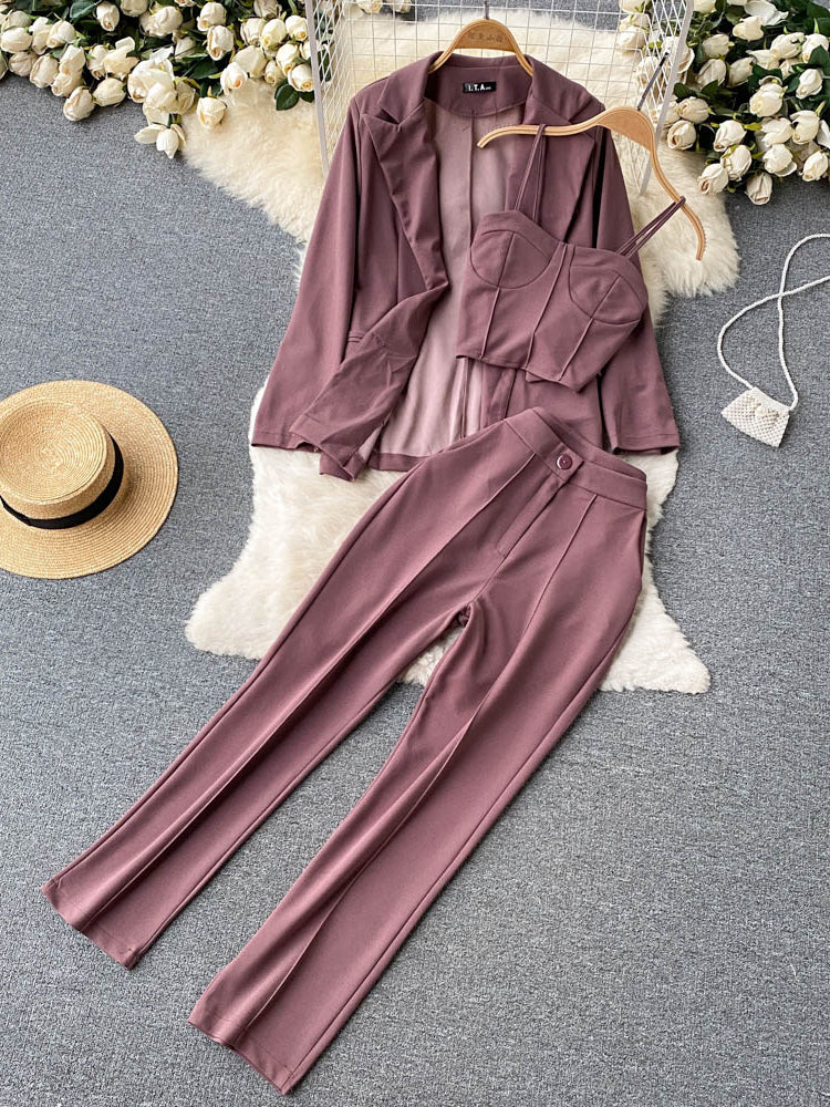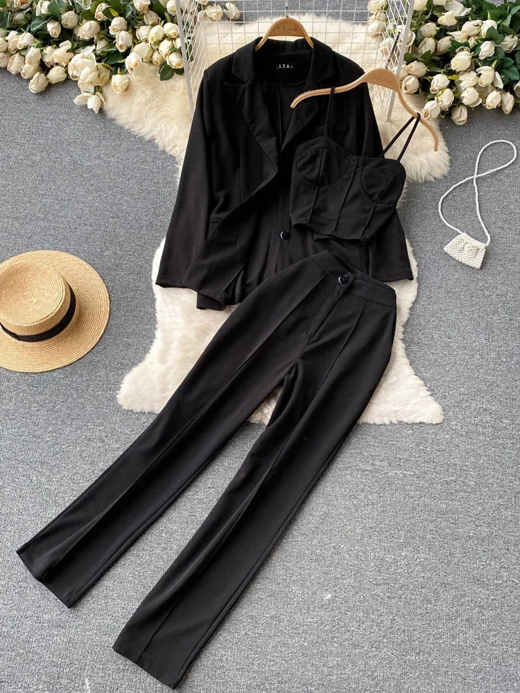 Women Elegant Blazer Three Piece Sets Sexy Tank Tops Loose Jacket and Slim High Waisted Long Pants Suits Woman Outfits