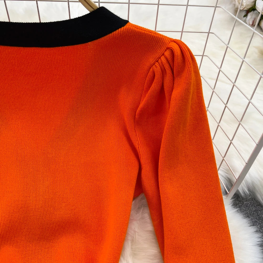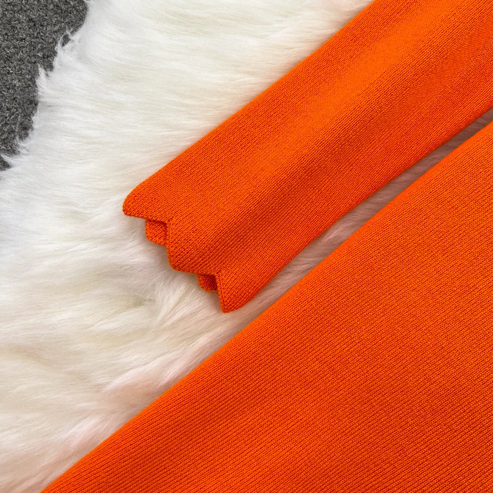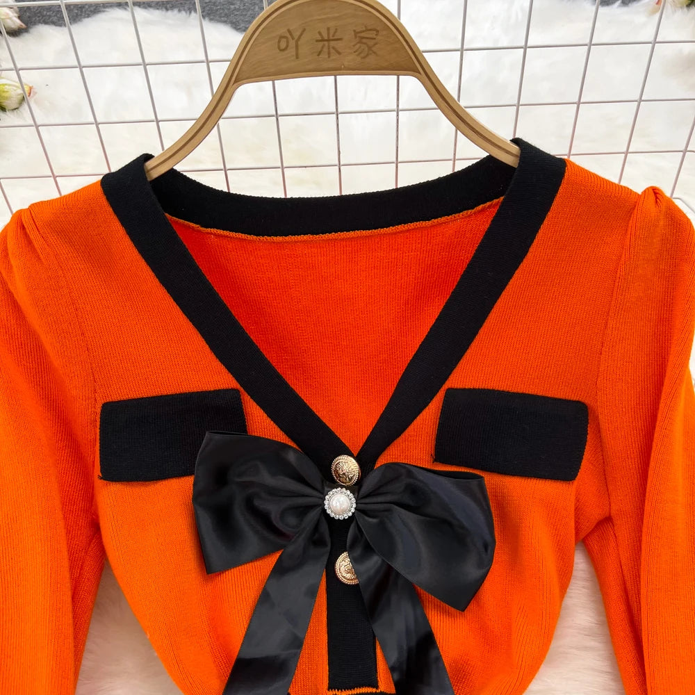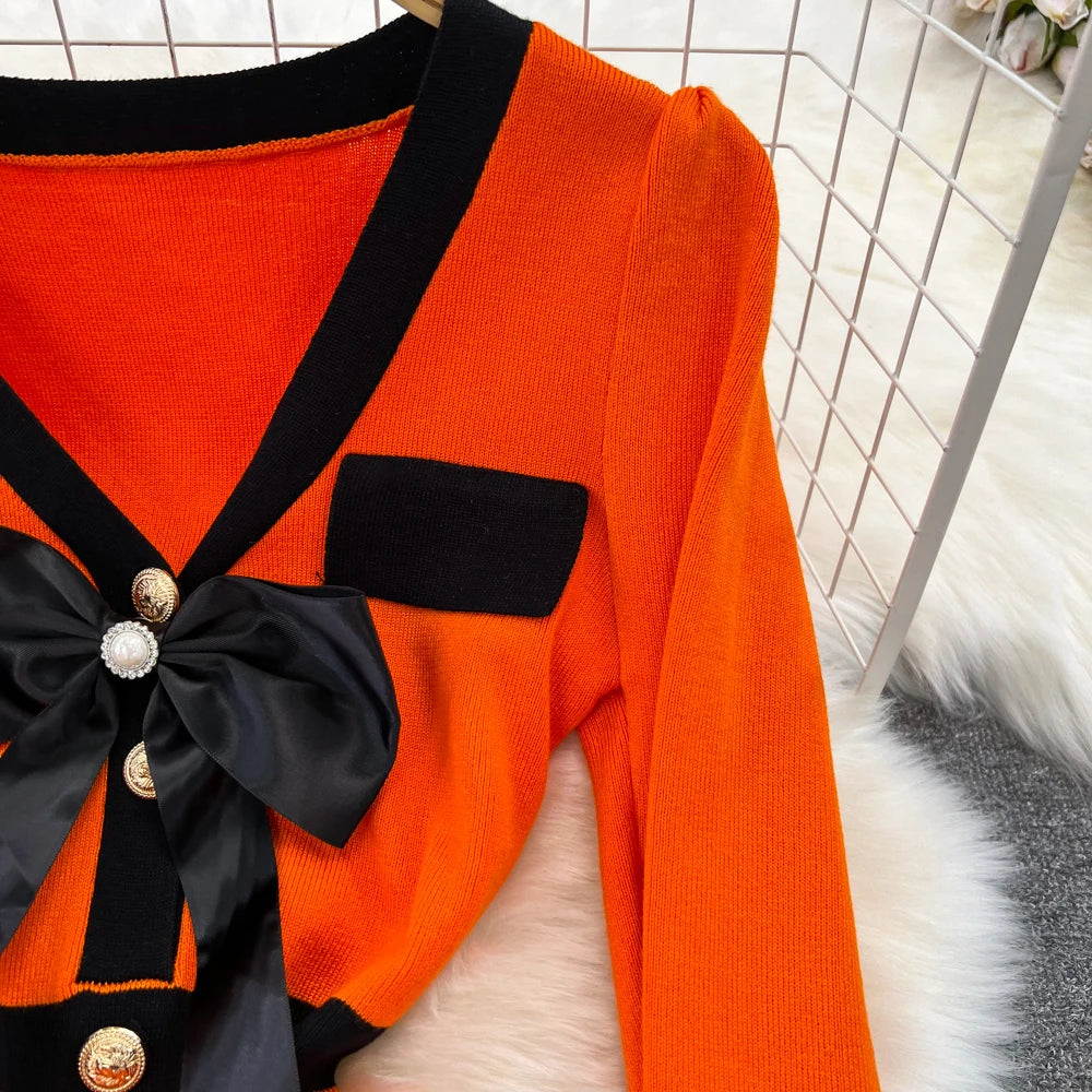 Women Elegant Butterfly Long Sleeve Bodycon V Neck Split Dress Vintage French Slim Knit Tight Vestido Autumn Winter Sweater Robe