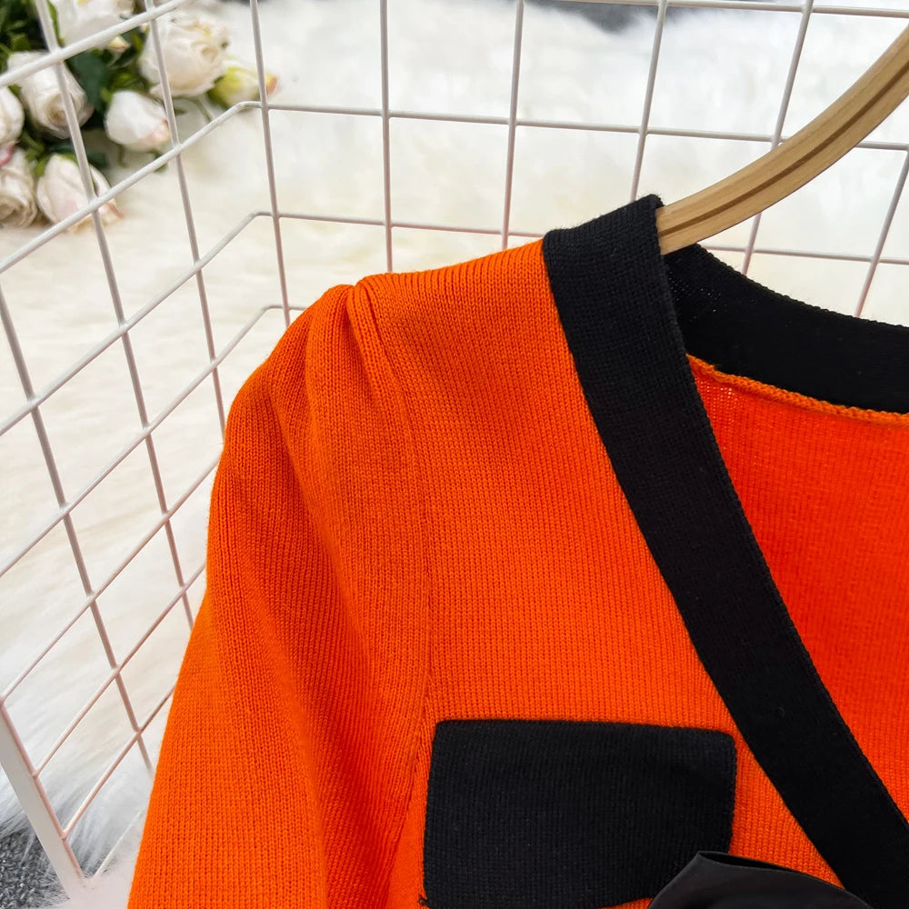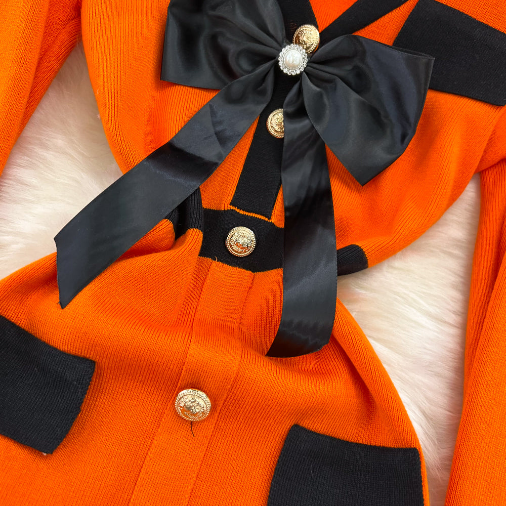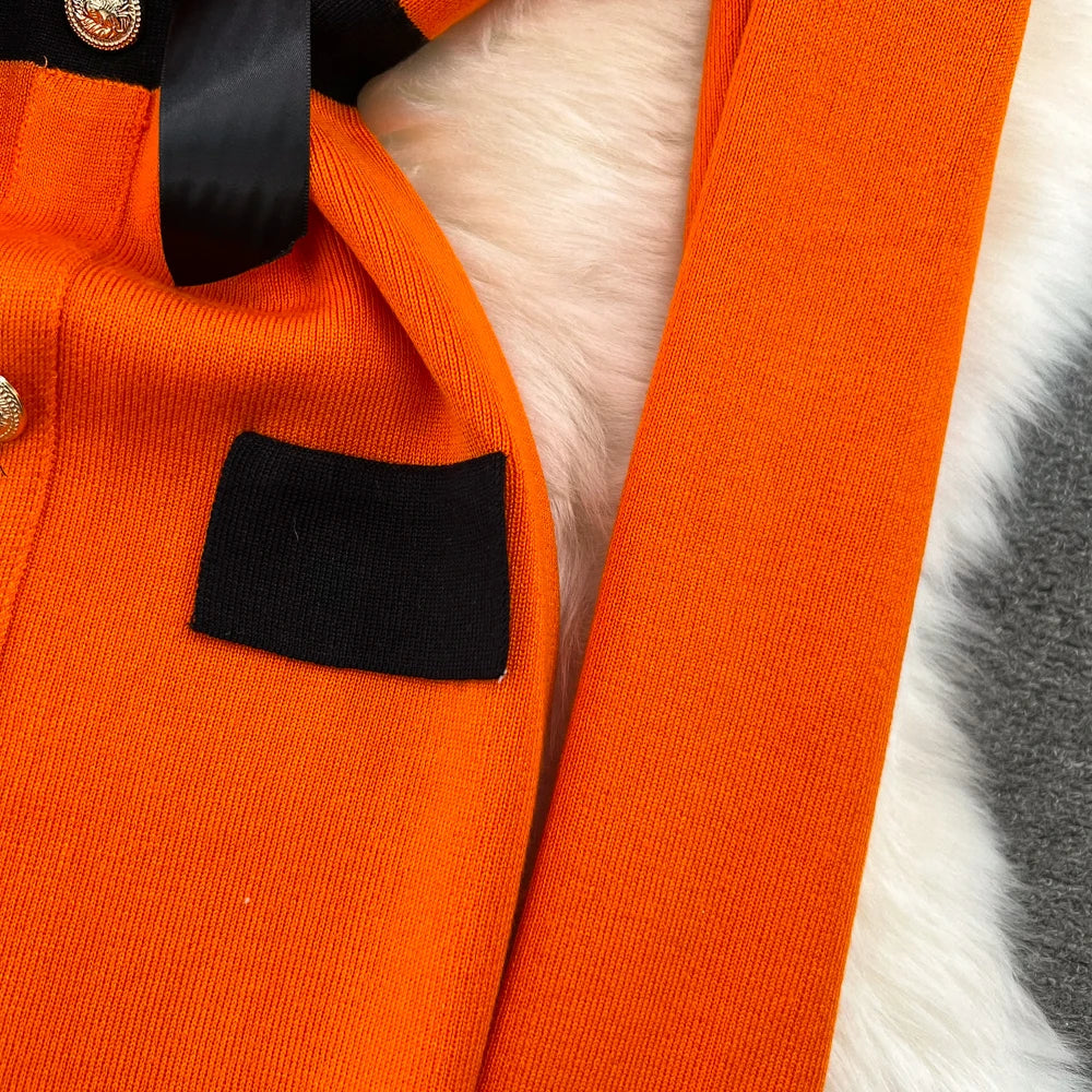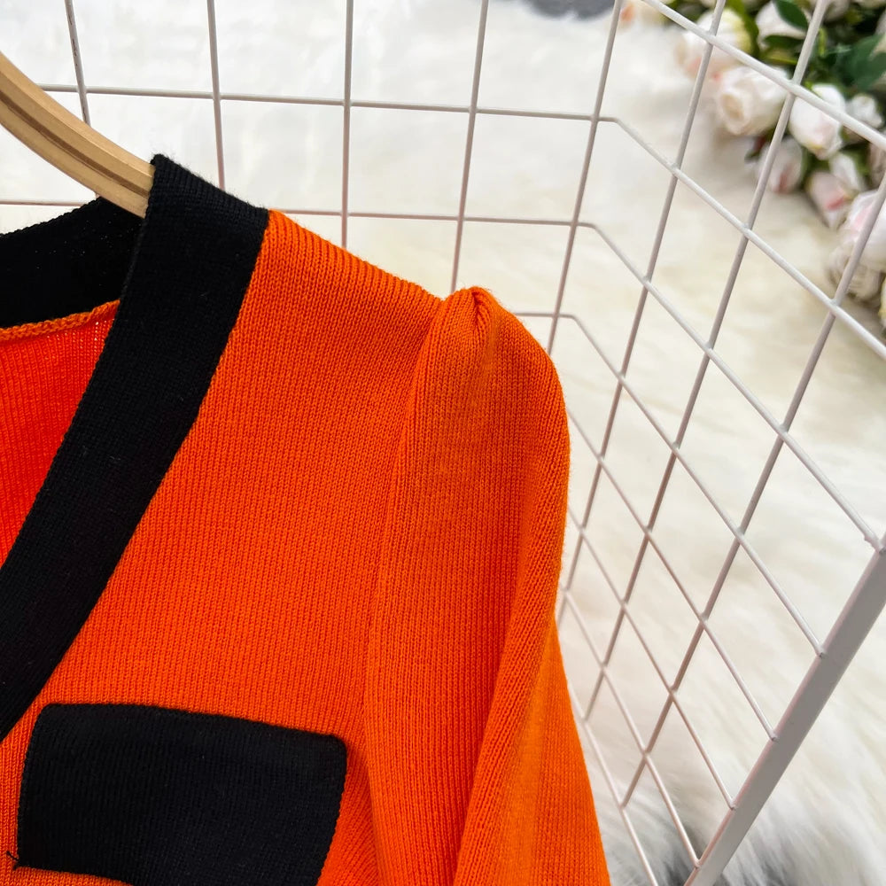 Women Elegant Butterfly Long Sleeve Bodycon V Neck Split Dress Vintage French Slim Knit Tight Vestido Autumn Winter Sweater Robe