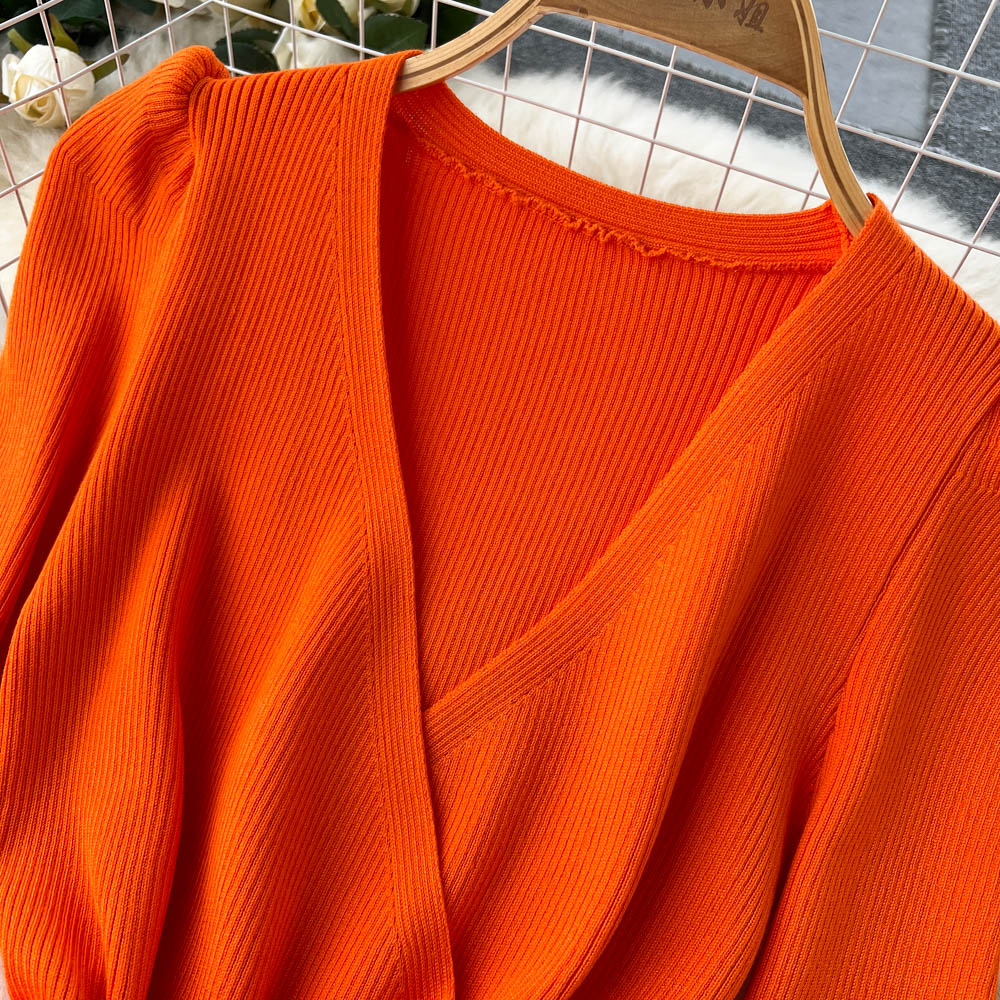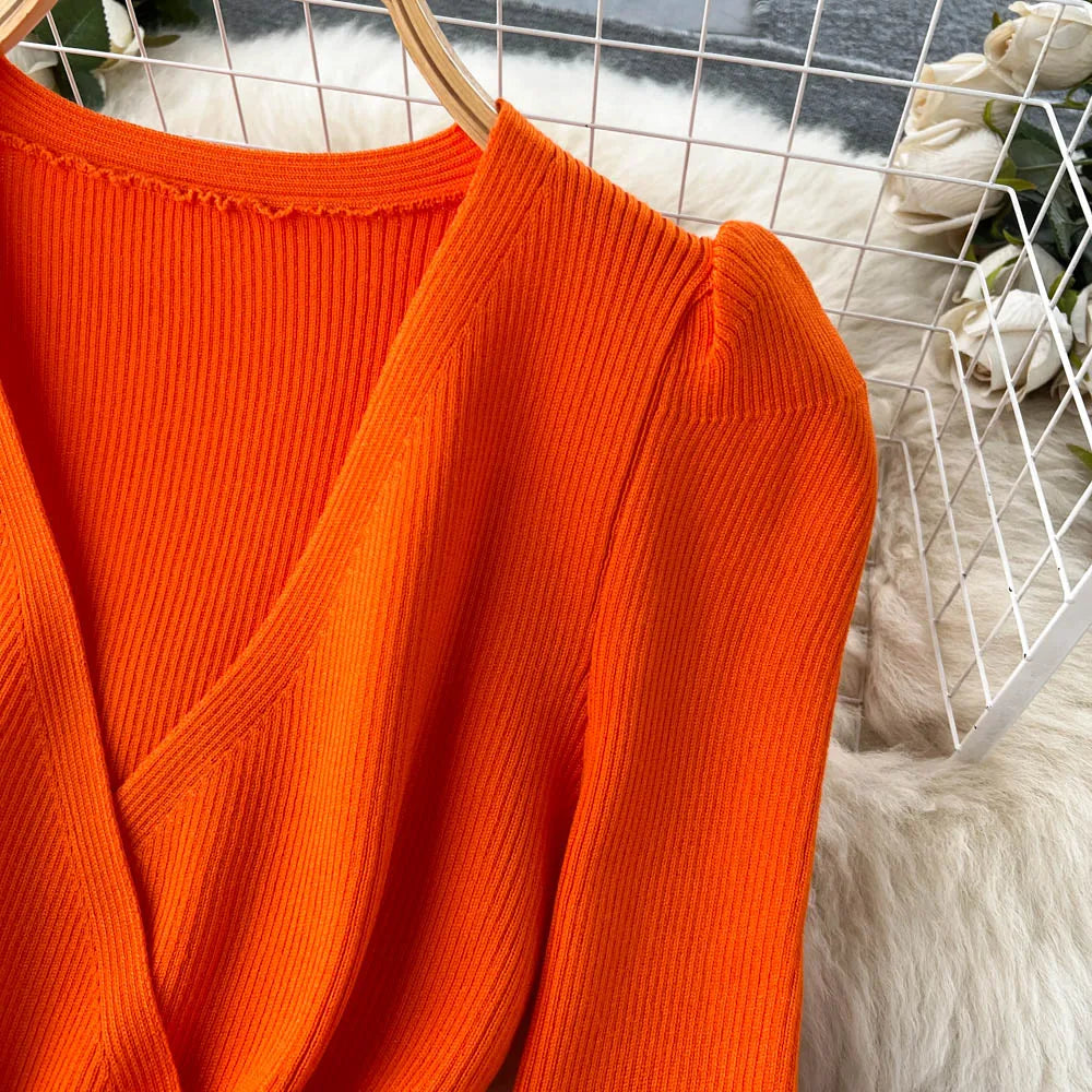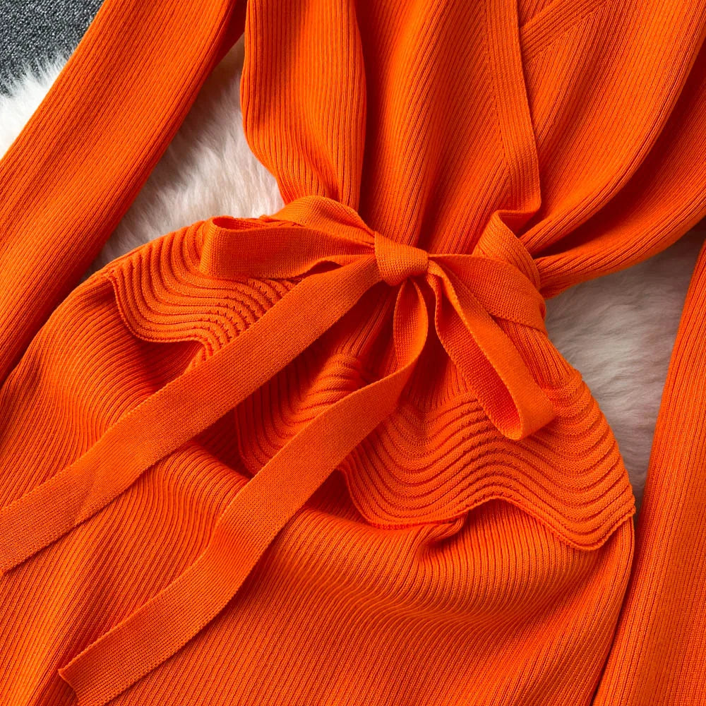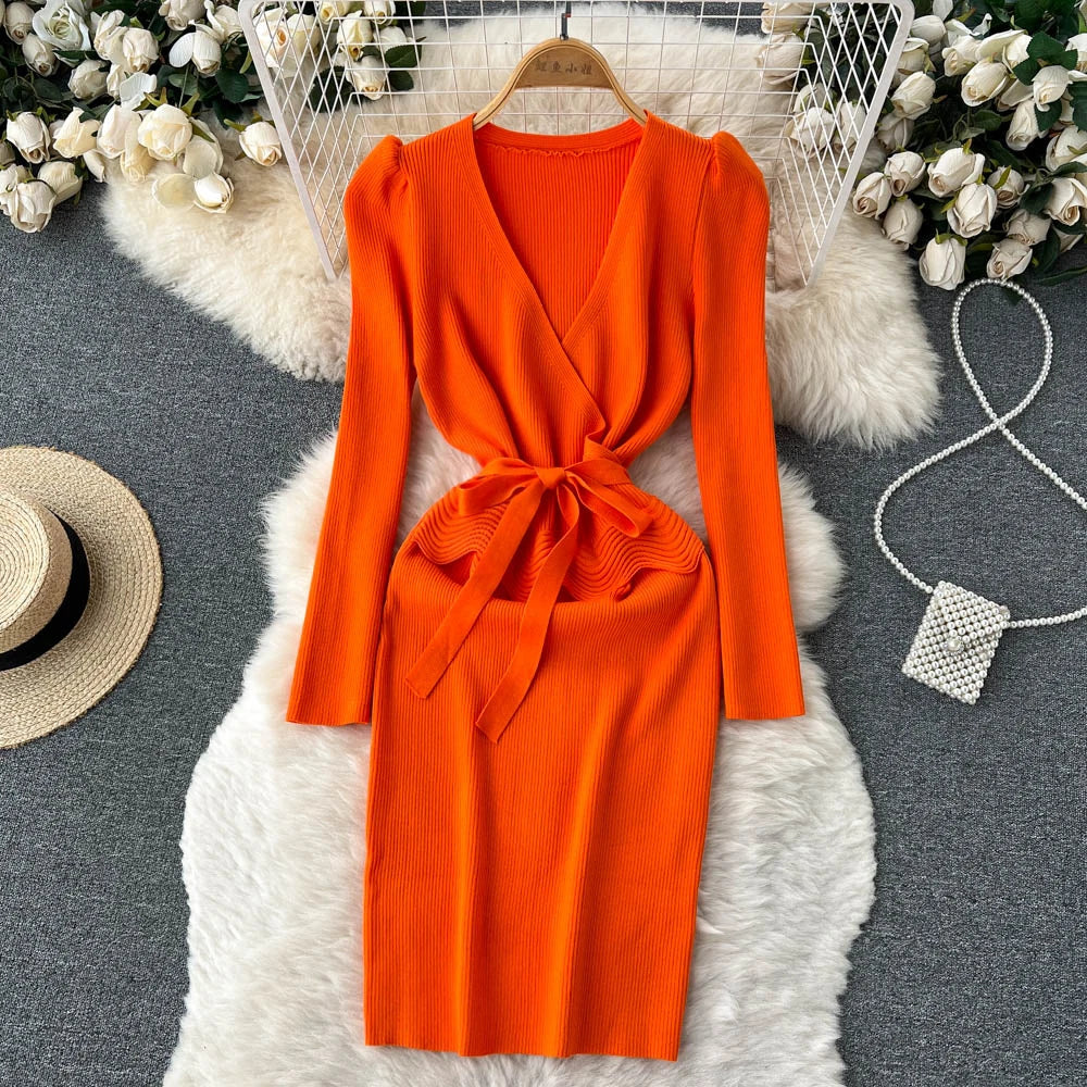 Women Long Sleeve V Neck Sexy Knit Bodycon Dress Chic Vintage Lace Up French Fashion Vestidos Party Elegant Fashion Dresses Y2k