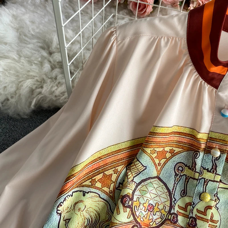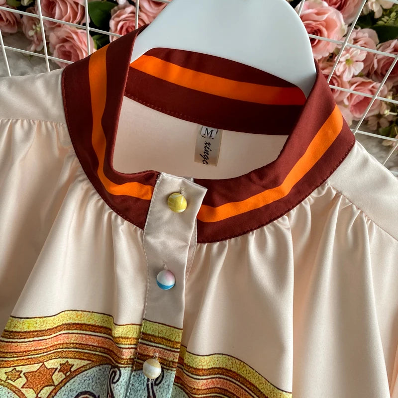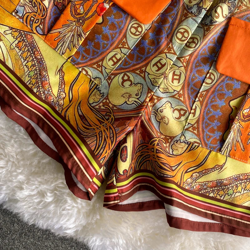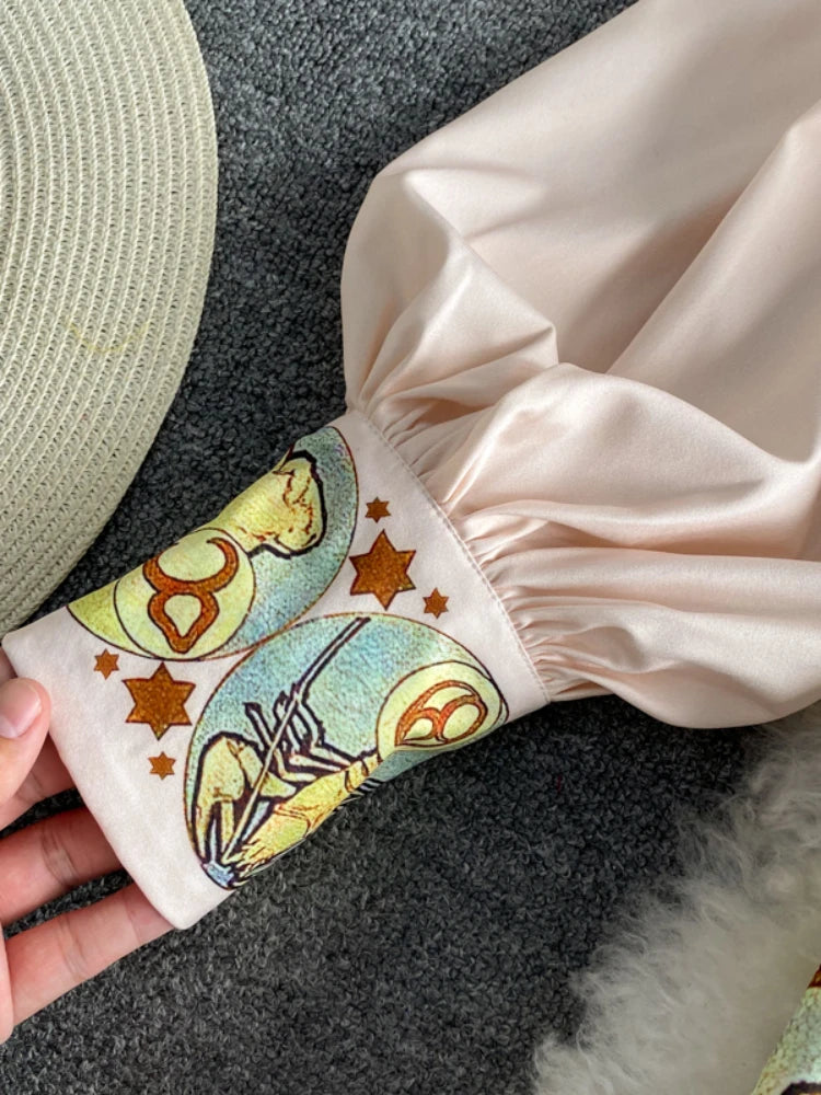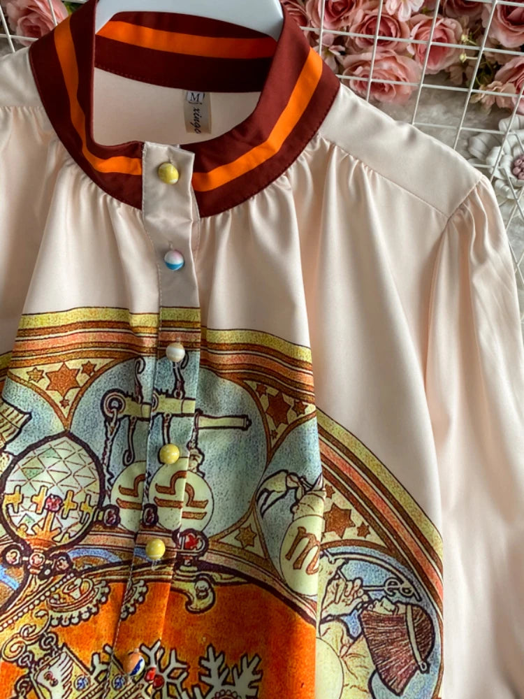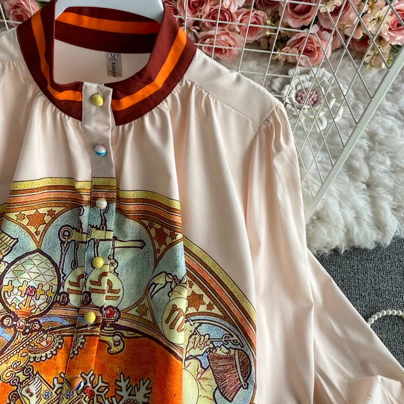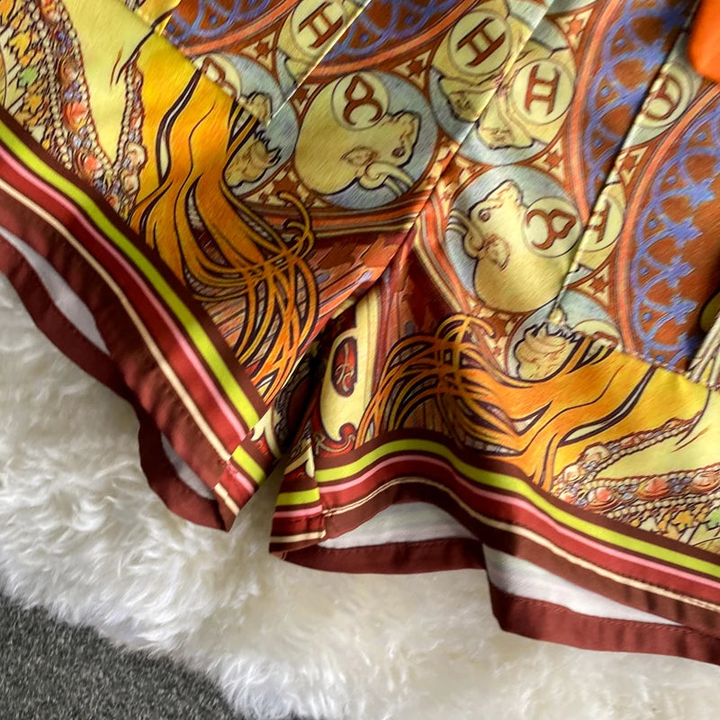 Women Printed Two Piece Set Retro Chic Spring Fragmented Flower Shorts+Long Sleeve Shirt Top Elegant Suits Spring Summer Outfits