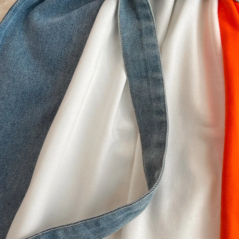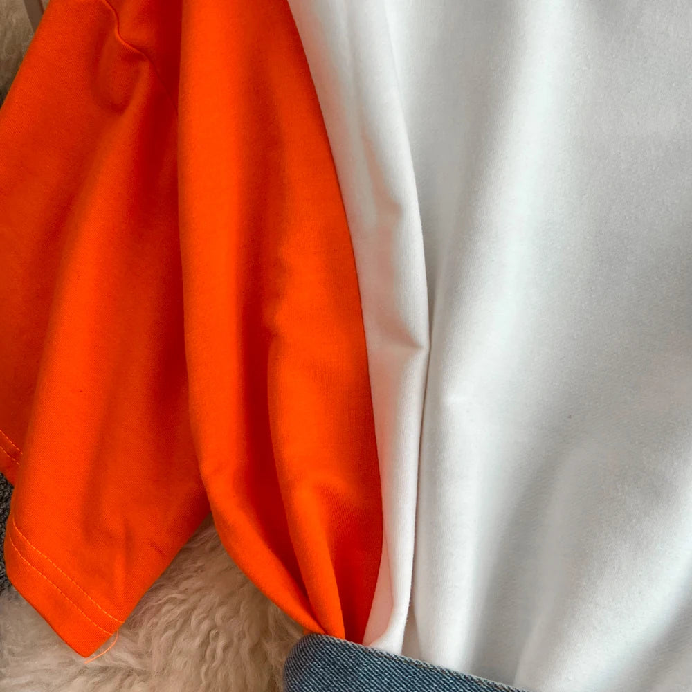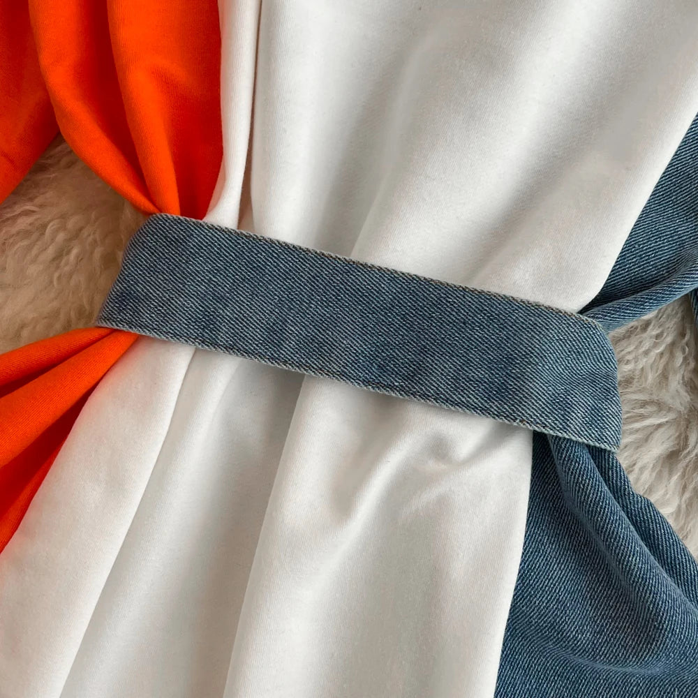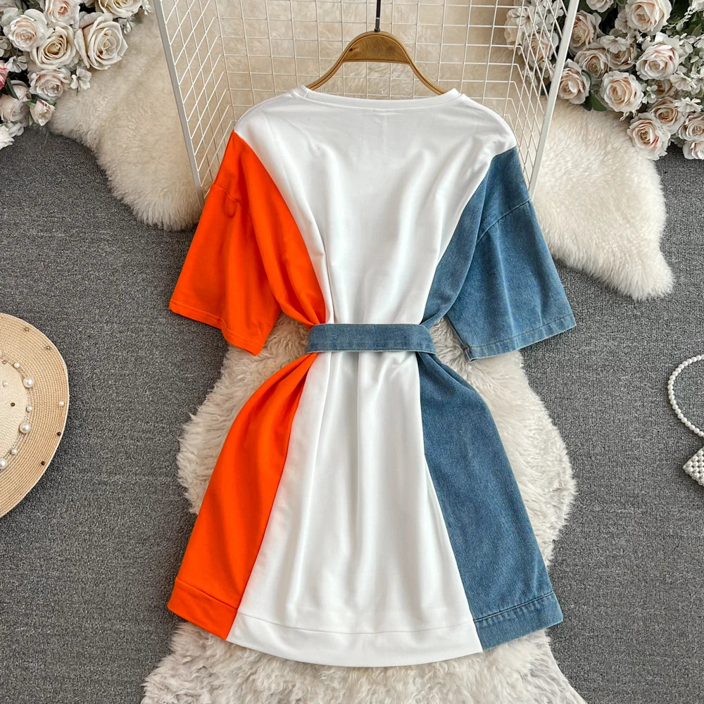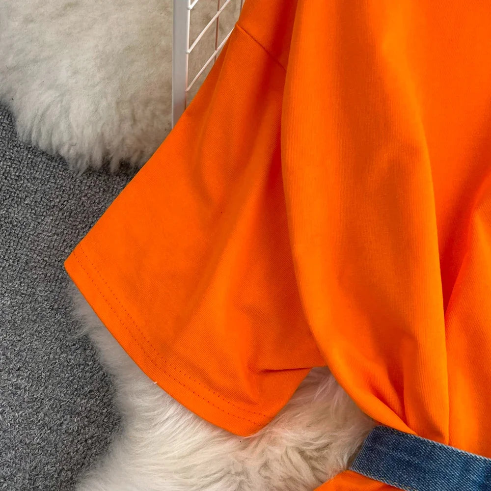 Women Summer Casual T Shirt Short Sleeve Streetwear Patchwork Denim Long Shirts Female O-neck Slim Jeans Tops