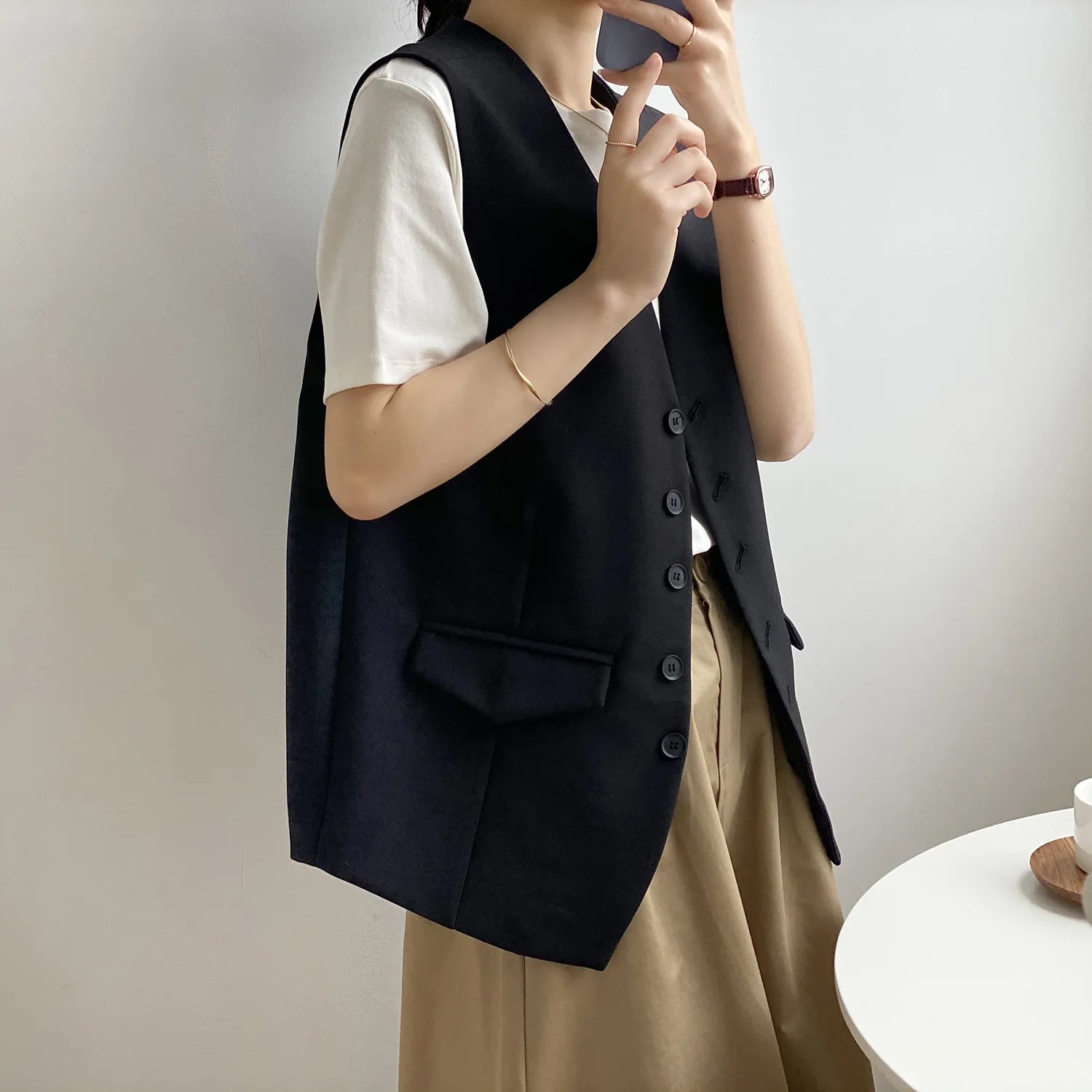 Women V-neck Suit Vest Spring Autumn New Korean Version Fashionable Sleeveless Jacket Trendy Casual Single Breasted Waistcoat