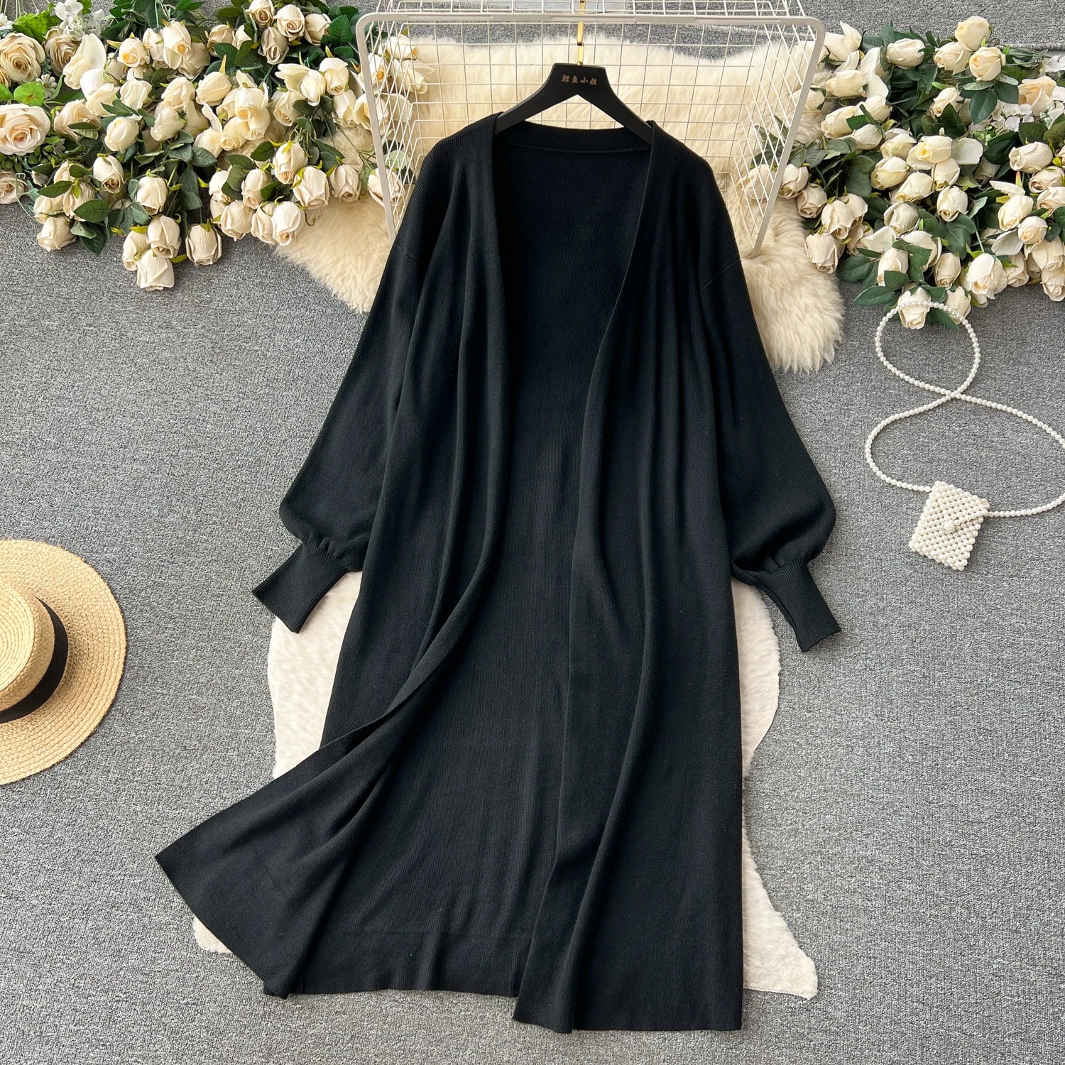 Women's Autumn French Fashion Outfits Knitted Two Piece Set V-neck Suspenders Strap Dress+Loose Long sleeved Cardigan Dress Suit