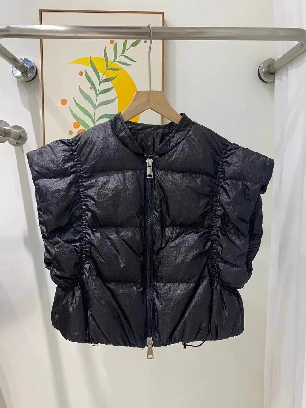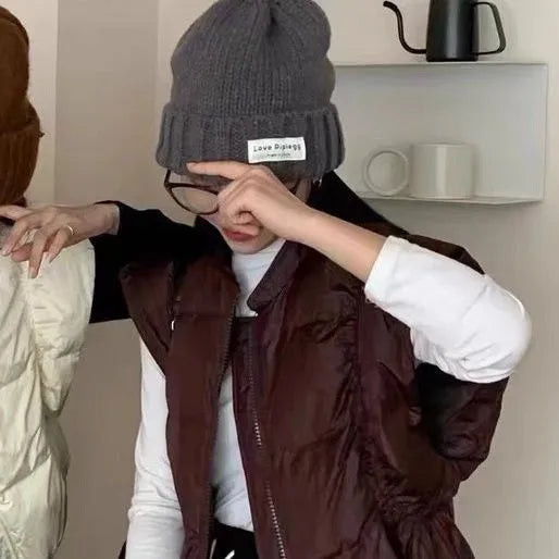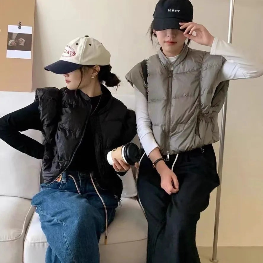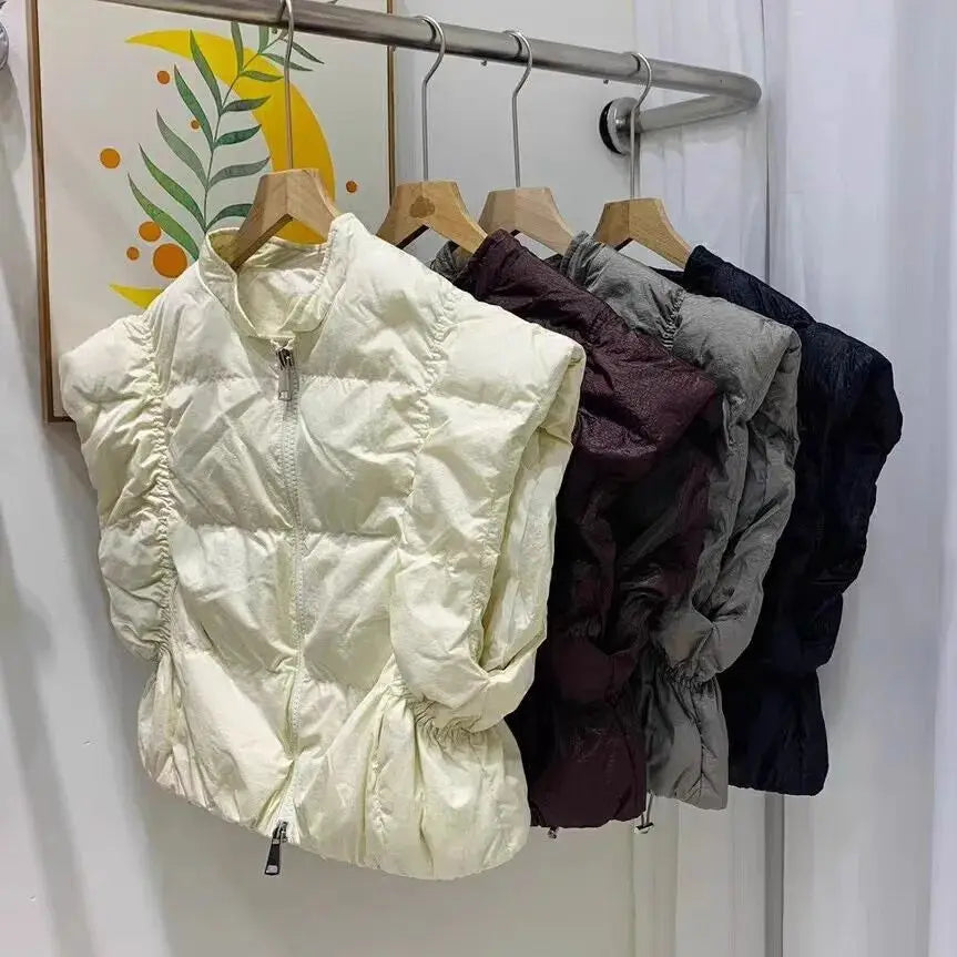 Women's Trendy Down Jacket Vest Winter Chic Sleeveless Zip Coat Round Neck Cropped Warm Waistcoat Female Spring 2024 New
