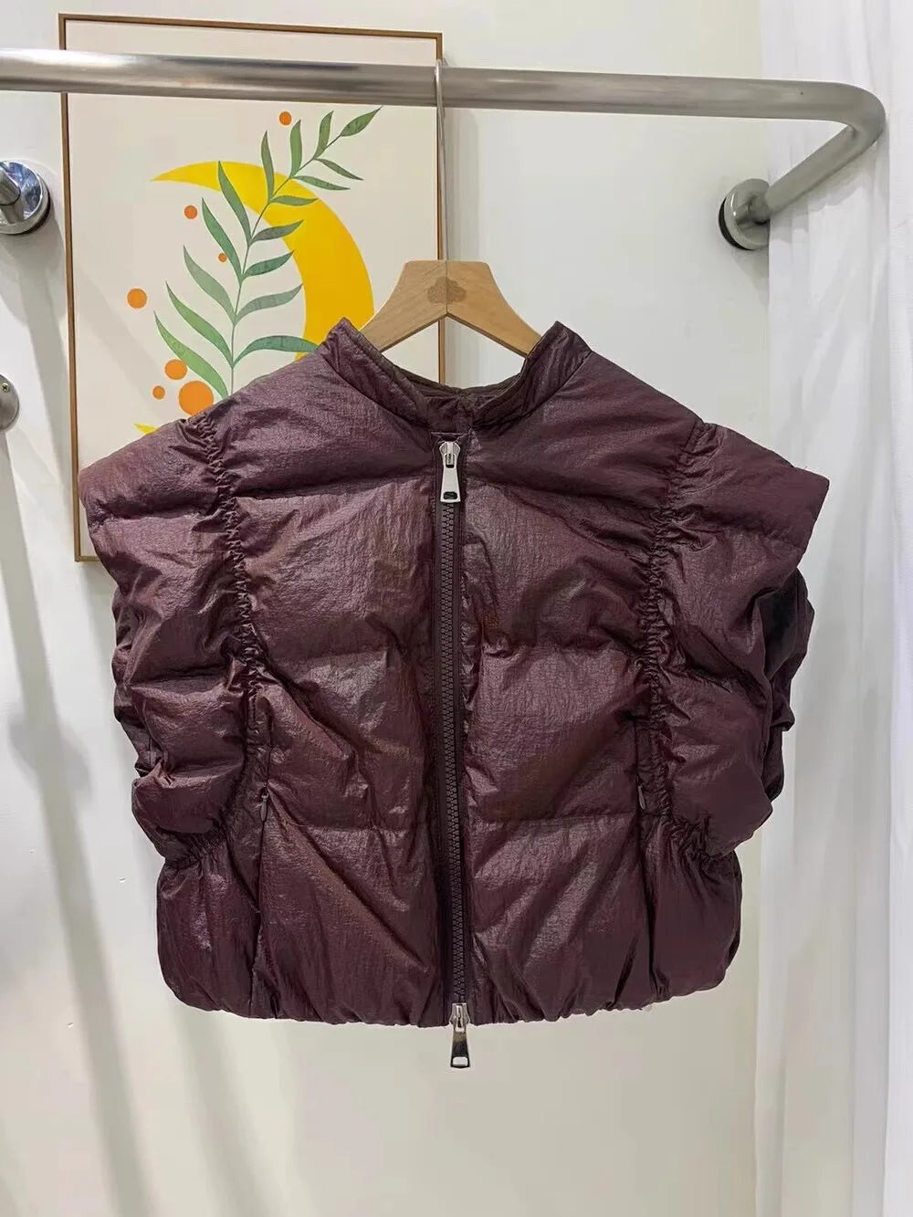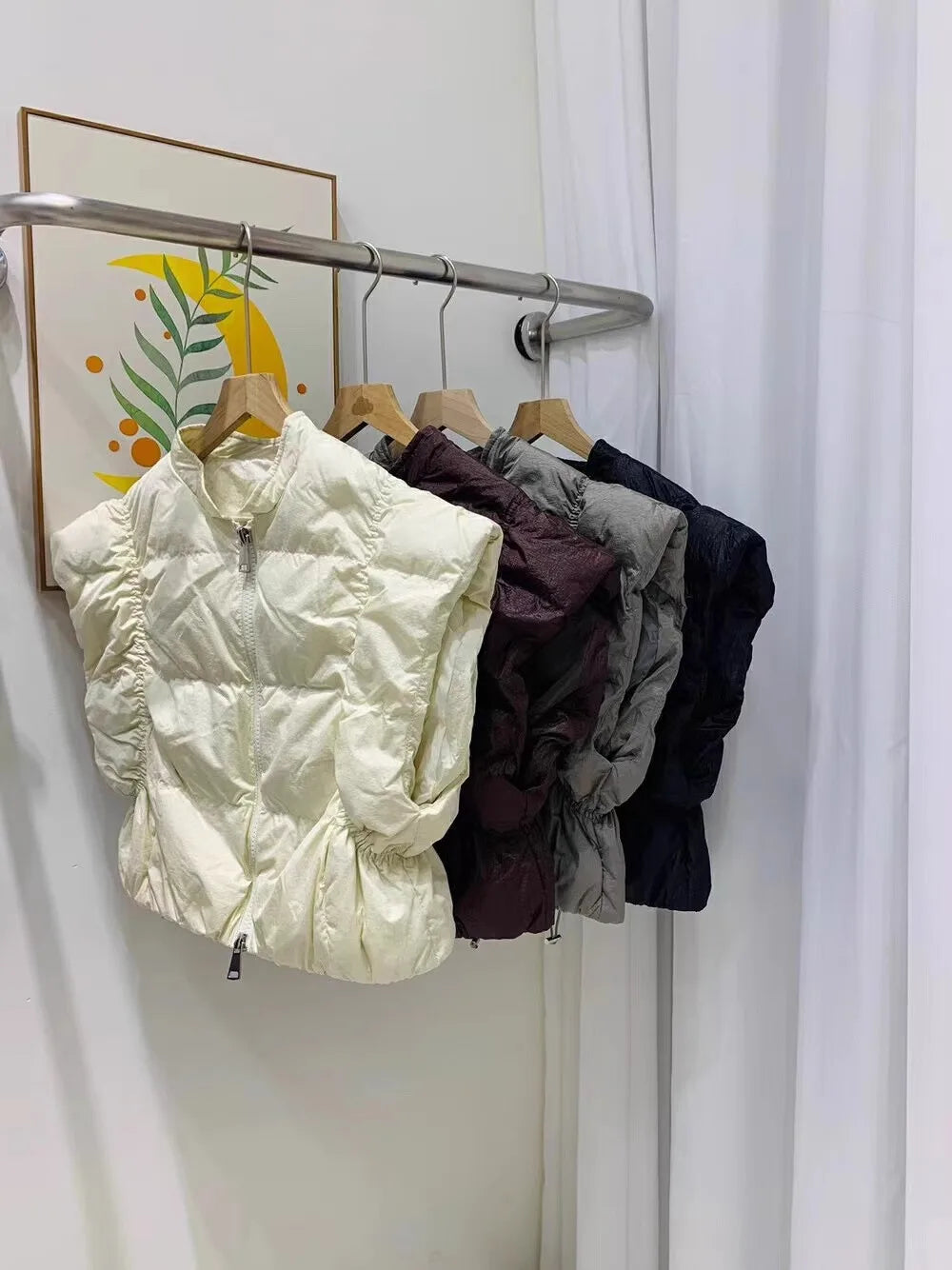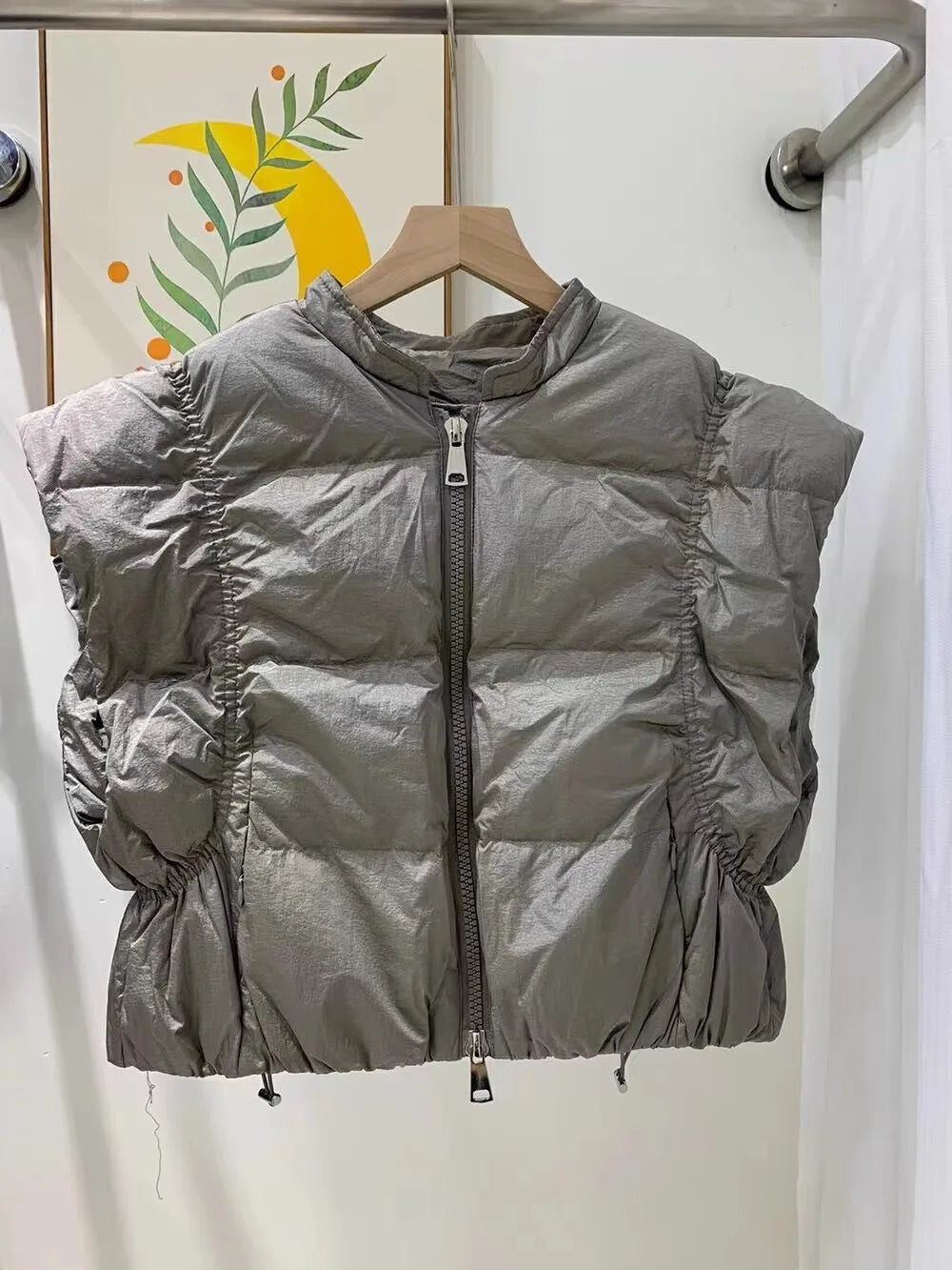Women's Trendy Down Jacket Vest Winter Chic Sleeveless Zip Coat Round Neck Cropped Warm Waistcoat Female Spring 2024 New
